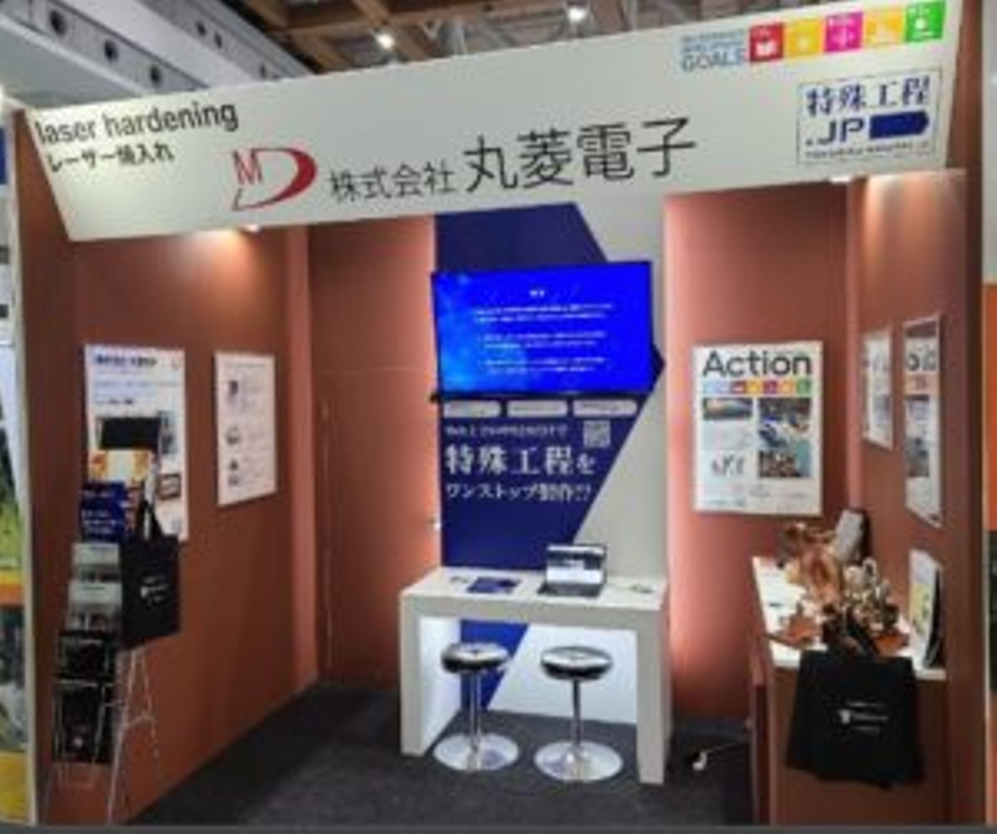 今回、弊社はレーザー焼入れ、そして富士高周波様と合同で取組んでいる特殊工程.jpをピックアップして宣伝してきました。また、パネルにてマイクロ高周波Mieや樹脂埋め込め機などの橘技研の設備、コイルの展示、モニターではレーザー焼入れの様子、特殊工程.jpの注文方法をご紹介しました。