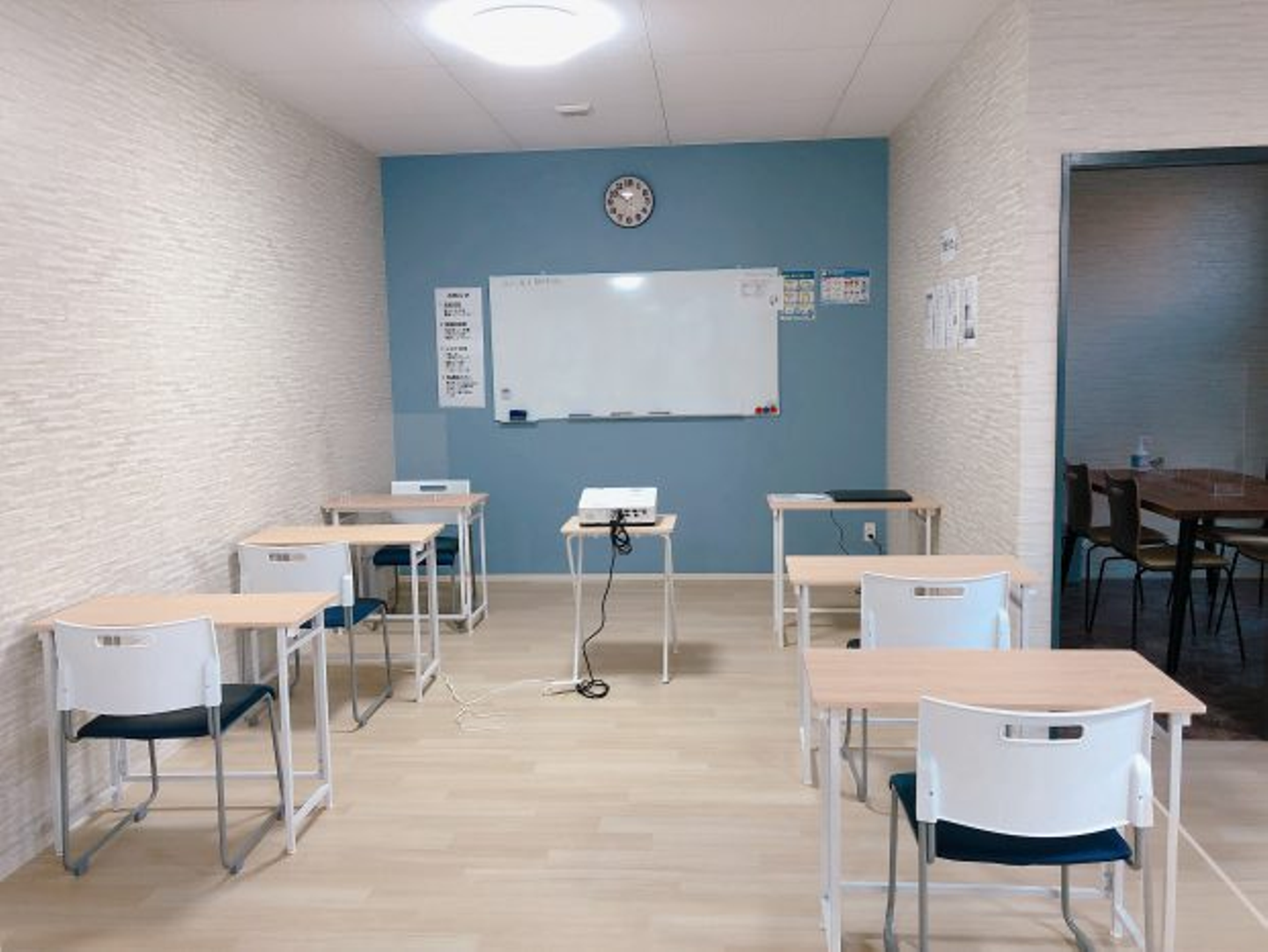 こちらのスペースを使いプロジェクターで資料を投影しながら説明したり、個別で説明したりします。