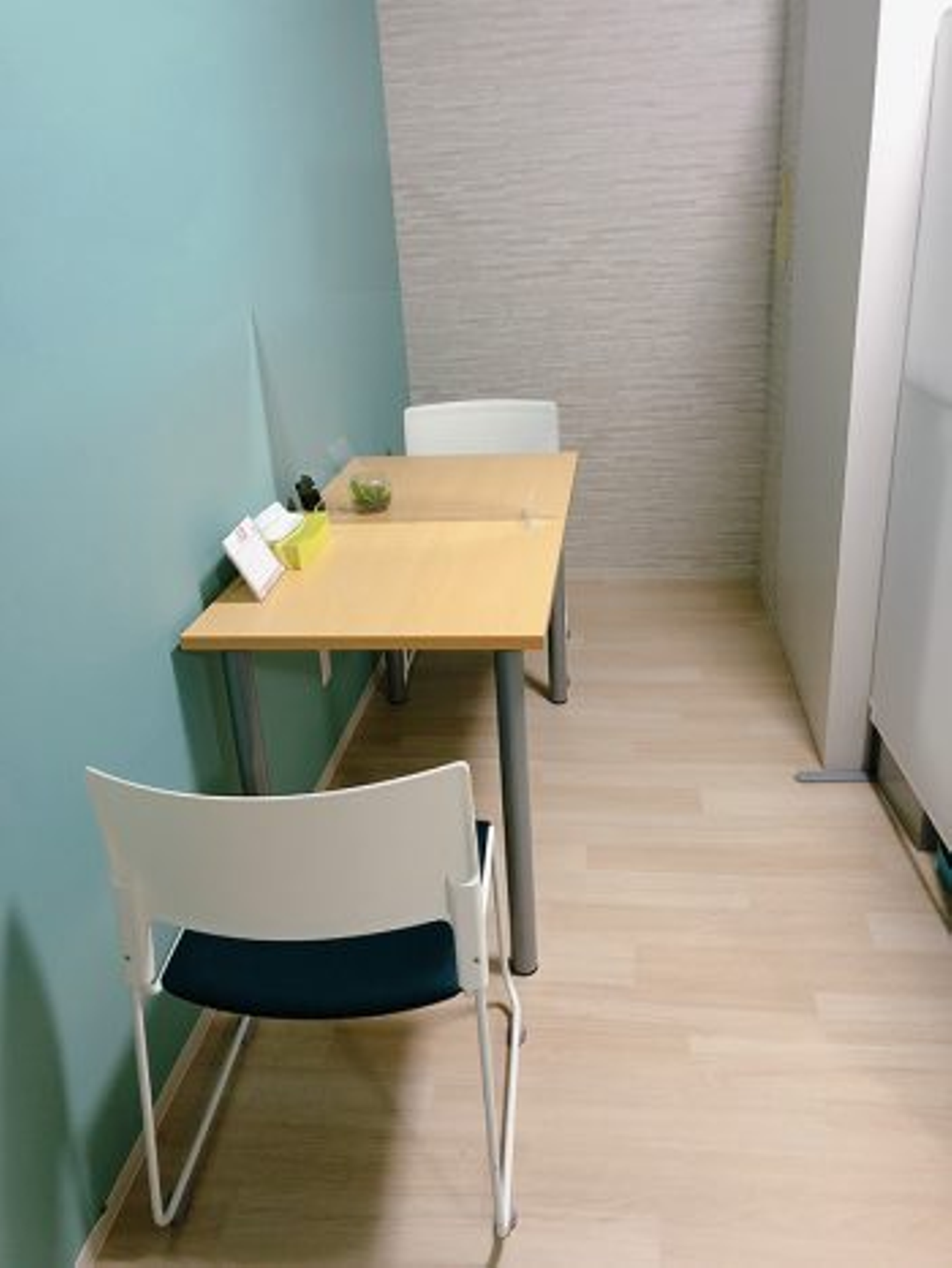 外からは中の様子は見えづらくなっており、落ち着いて面談していただけます。