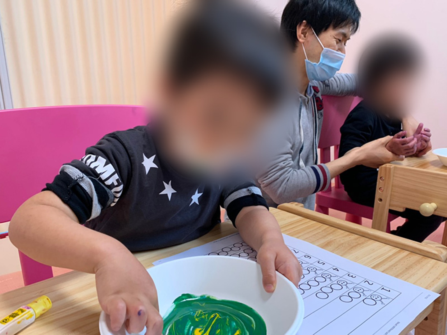 フィンガーペイントはご家庭でも簡単に楽しむことができます。