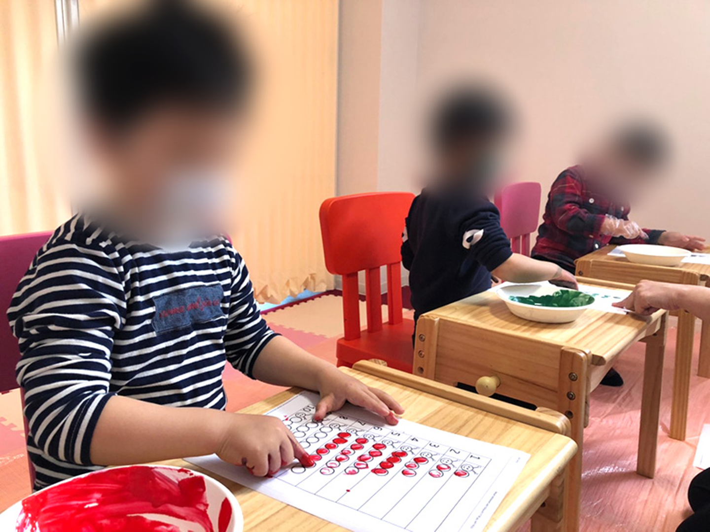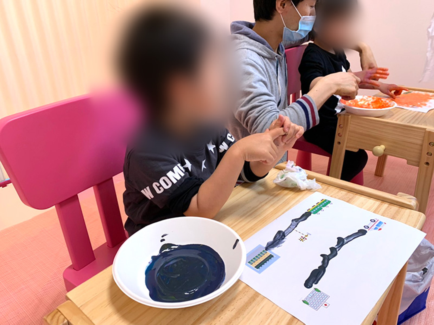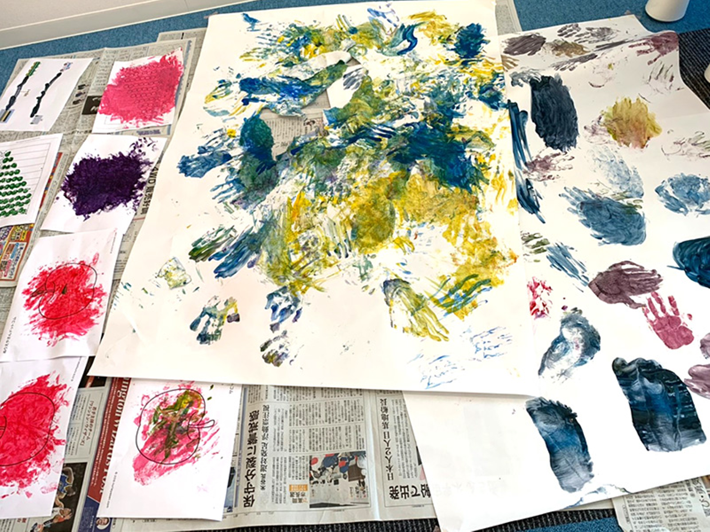 今月のイベントでは「フィンガーペイント」を行いました!