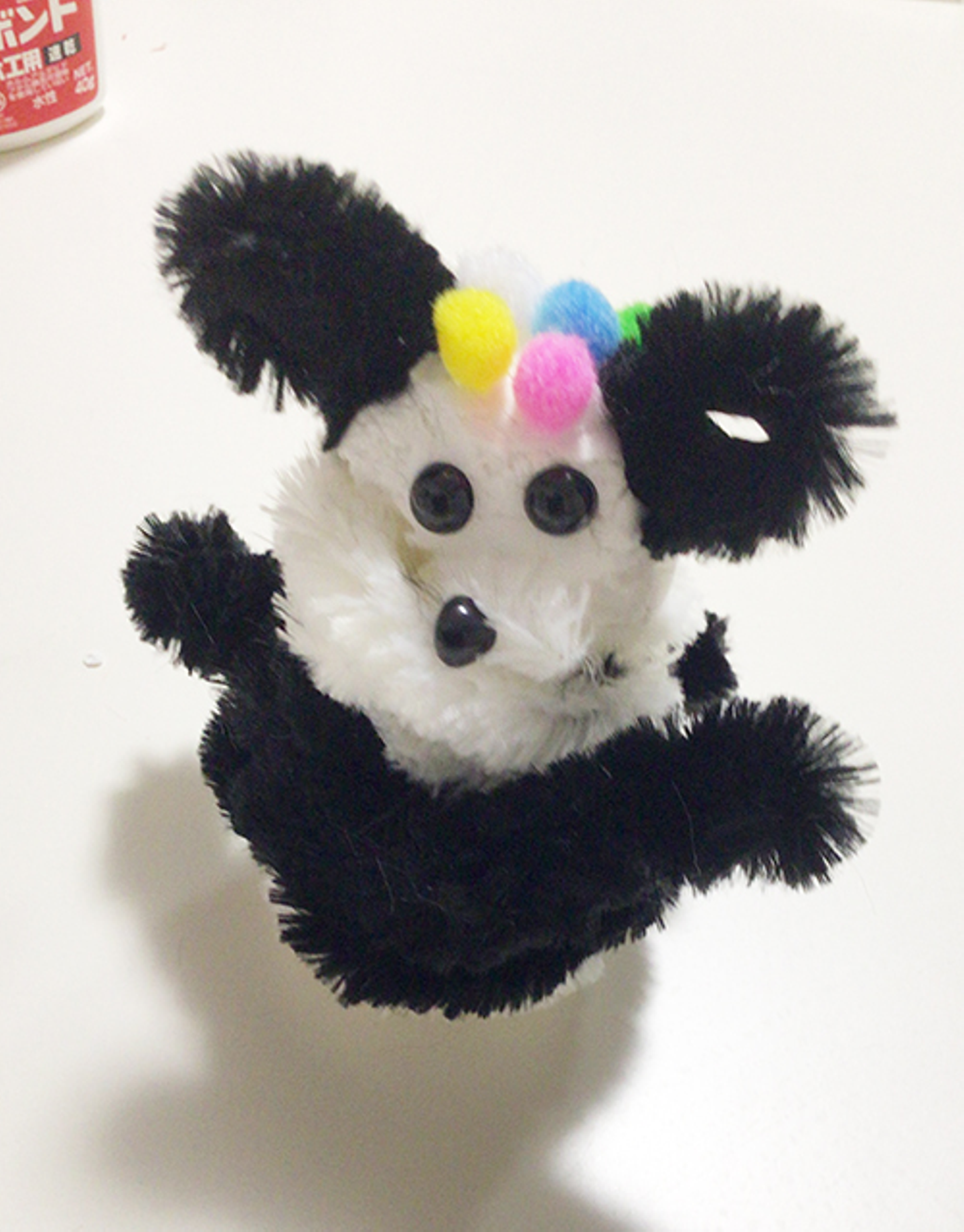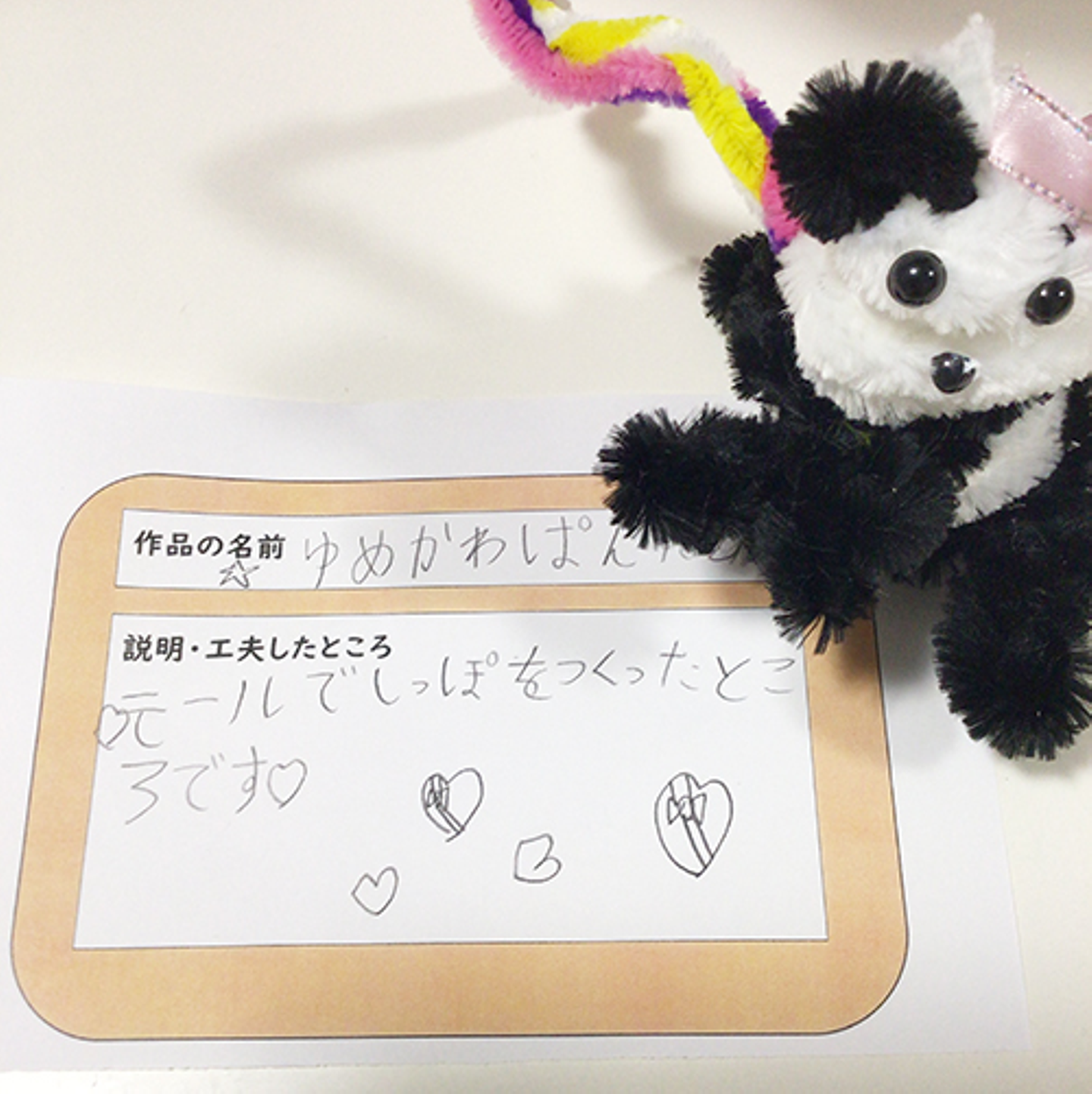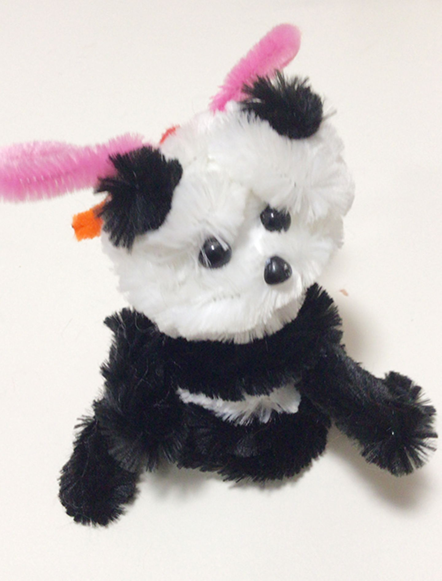 大きなリボンやカラフルなしっぽのついた、世界に一つだけのパンダができました。