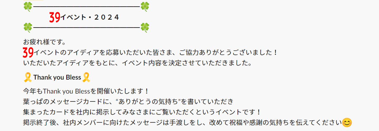 今年は社内からイベントアイデアを募集し、「39ブレス」を開催🎉🎉🎉