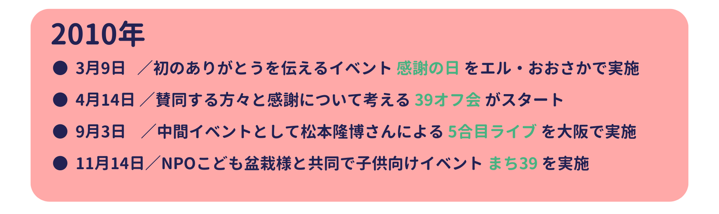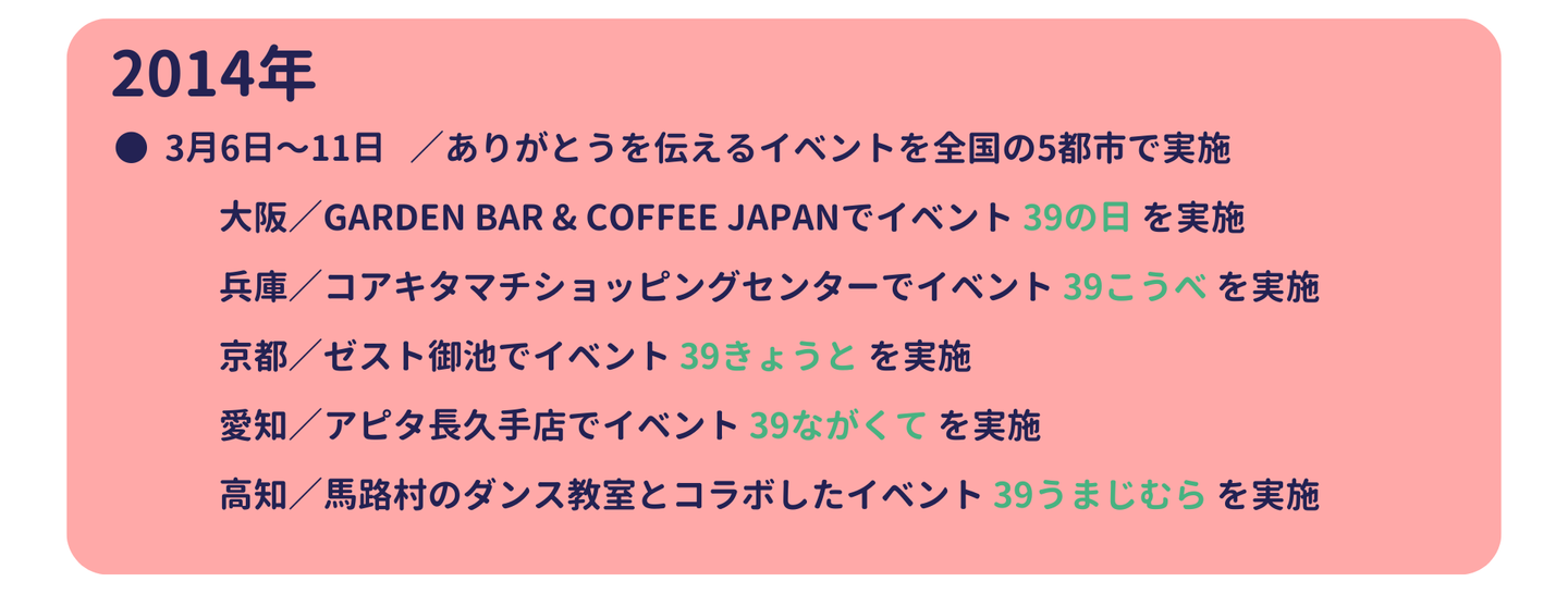 この「39プロジェクト」は私たちGREETING WORKSの代表がきっかけで始まったプロジェクトで、2010年から2014年の5年間にわたり取り組んできました。