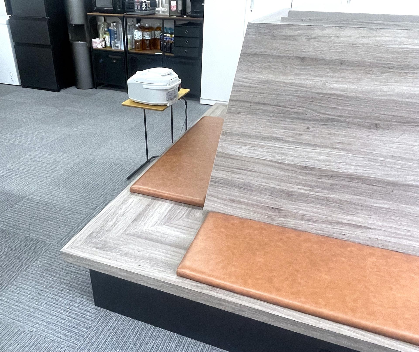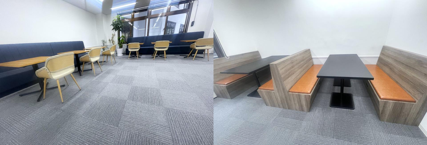 管理部エリアの隣はフリースペース。お昼休憩をとったり、気分転換にこちらでお仕事したり、MTGをしたり用途はいろいろです。