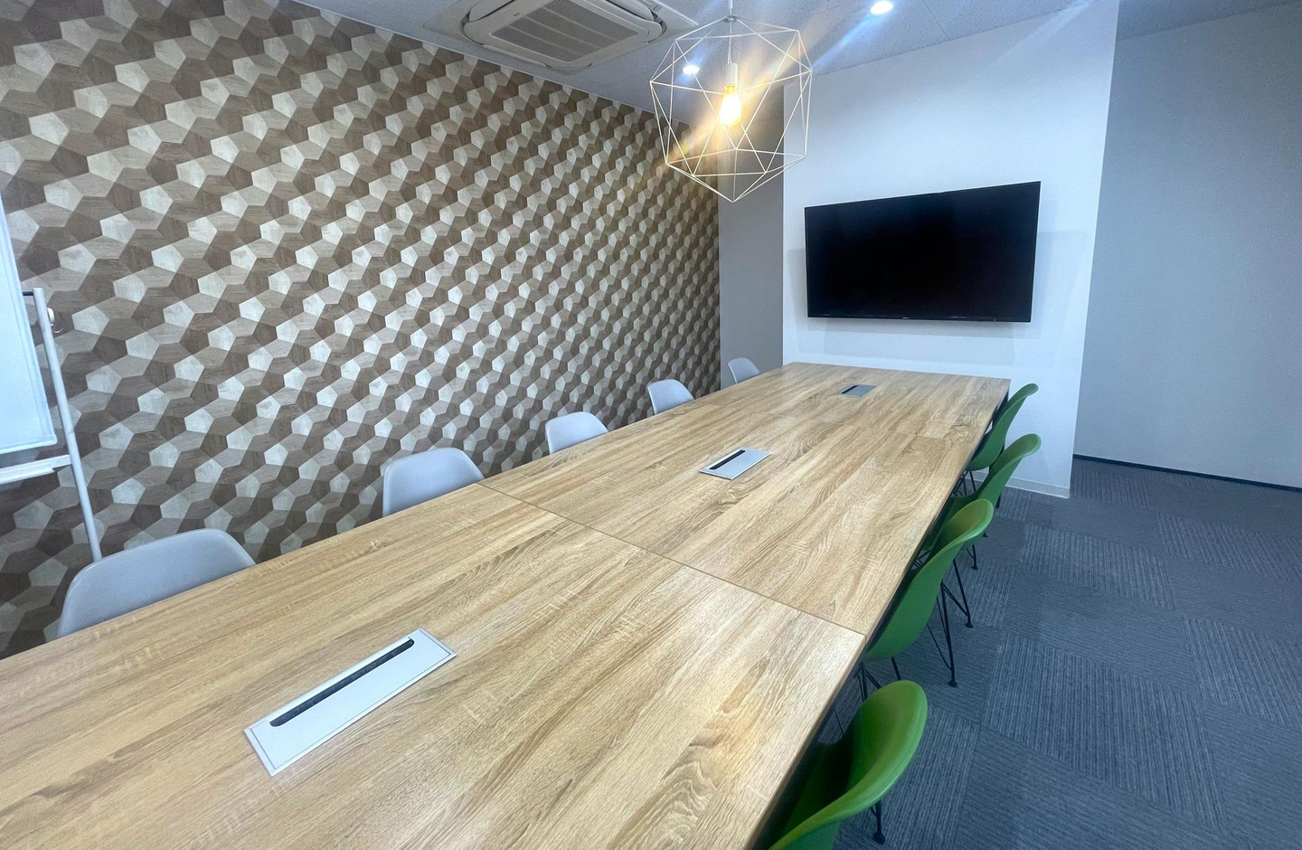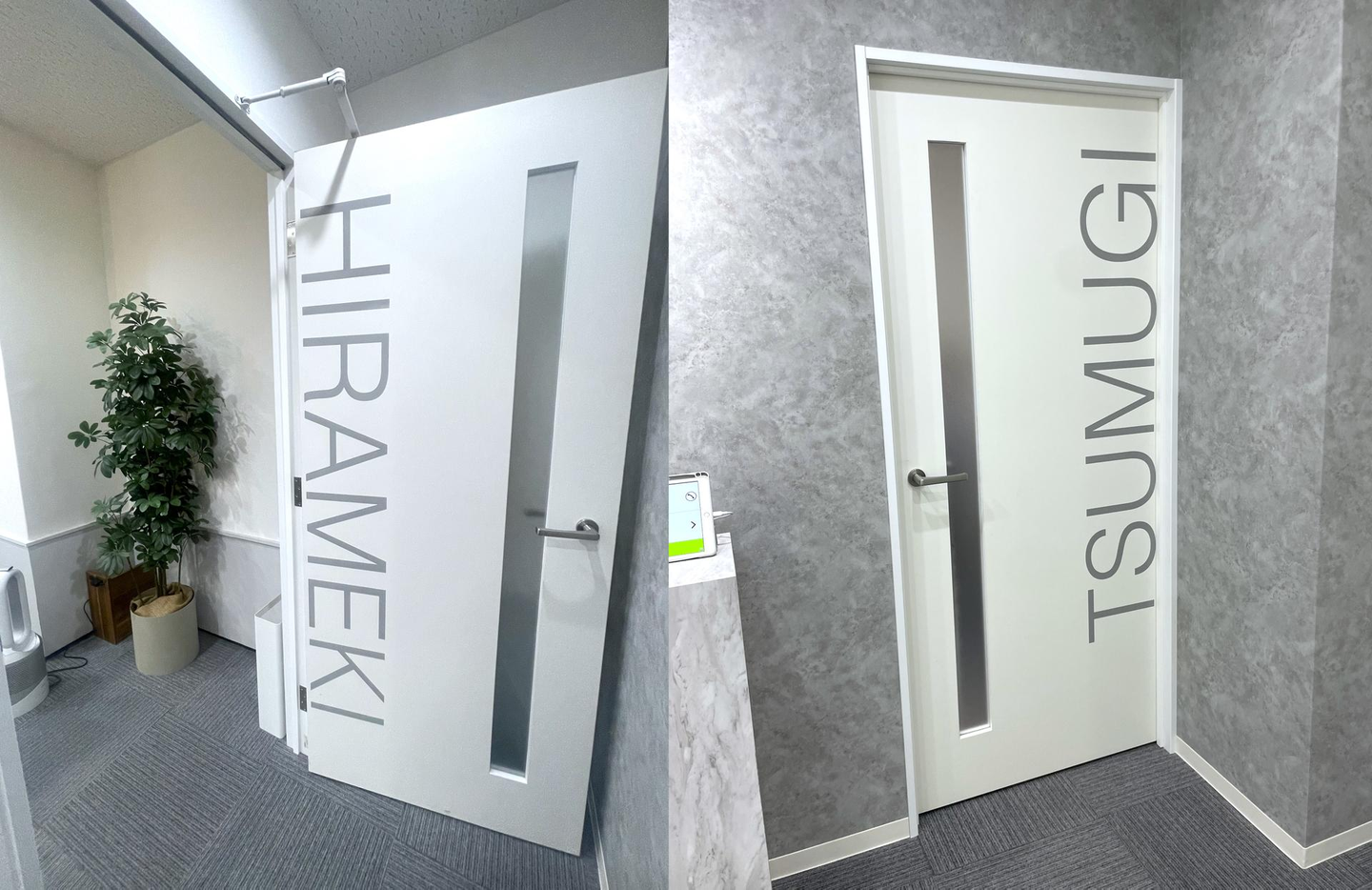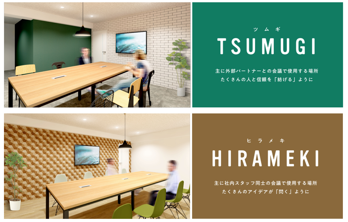 TSUMUGIはあたたかな雰囲気でコミュニケーションが取りやすく、HIRAMEKIは窓が大きく開放感があって、どちらもすごしやすいGREETING WORK自慢のMTGルームです🍀