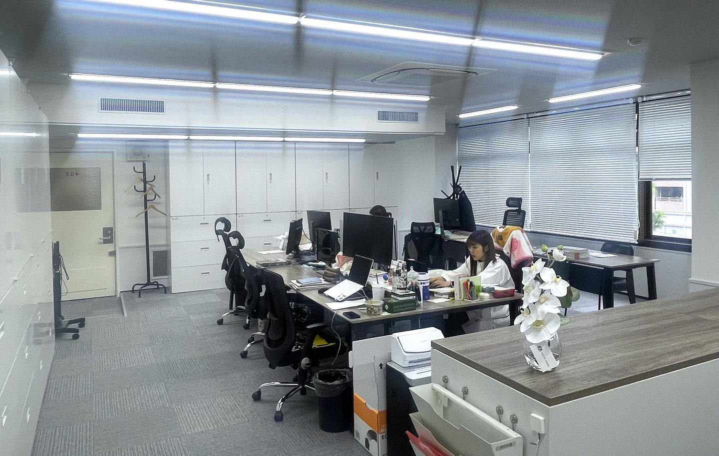 4階をさらに奥にすすんでいくと、管理部のエリアになります。総務・労務・法務・財務・人事などを担っており、管理部門ゆえ、たくさんの社員が日々訪れます。