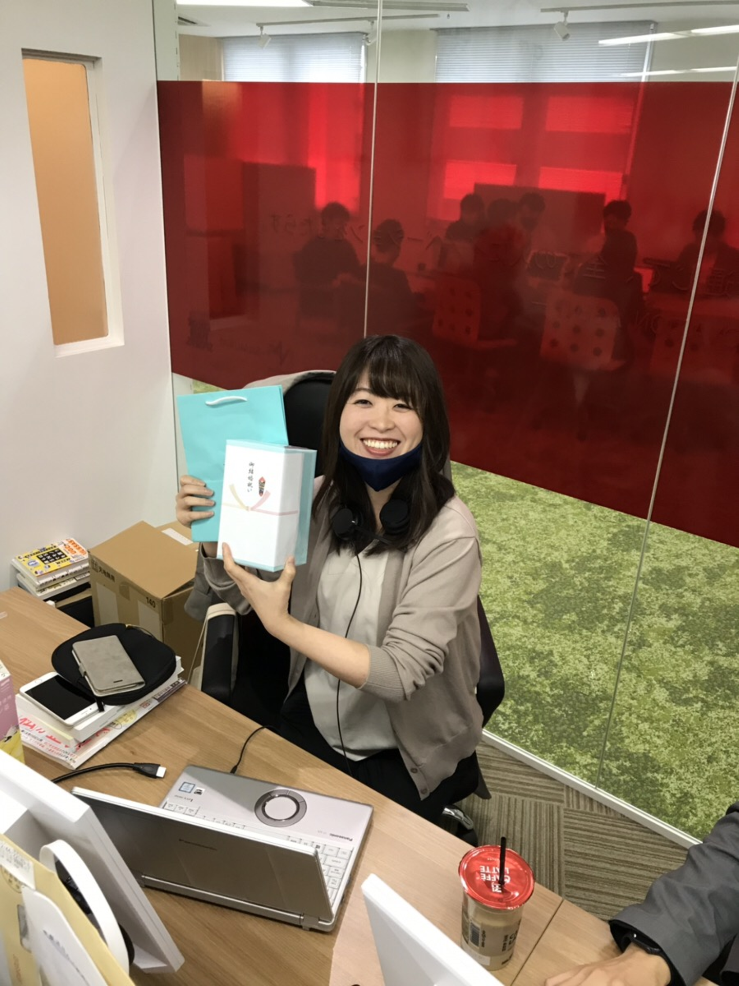社内で結婚祝いをした一幕
