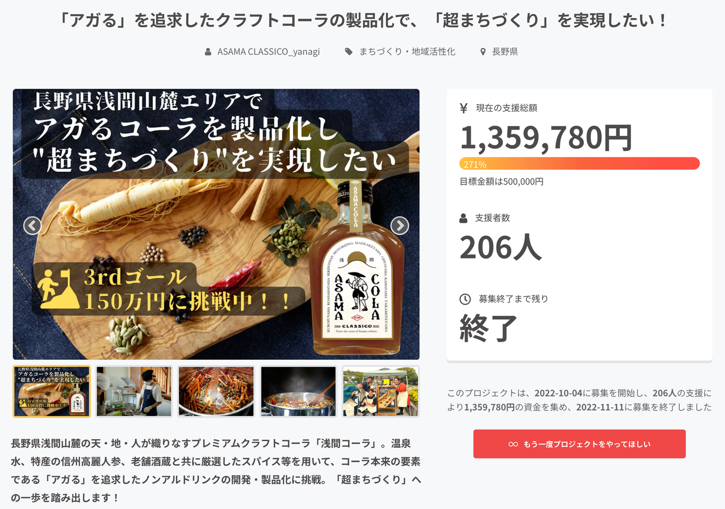 このとき利用したクラウドファンディングのサイトもぜひご覧ください