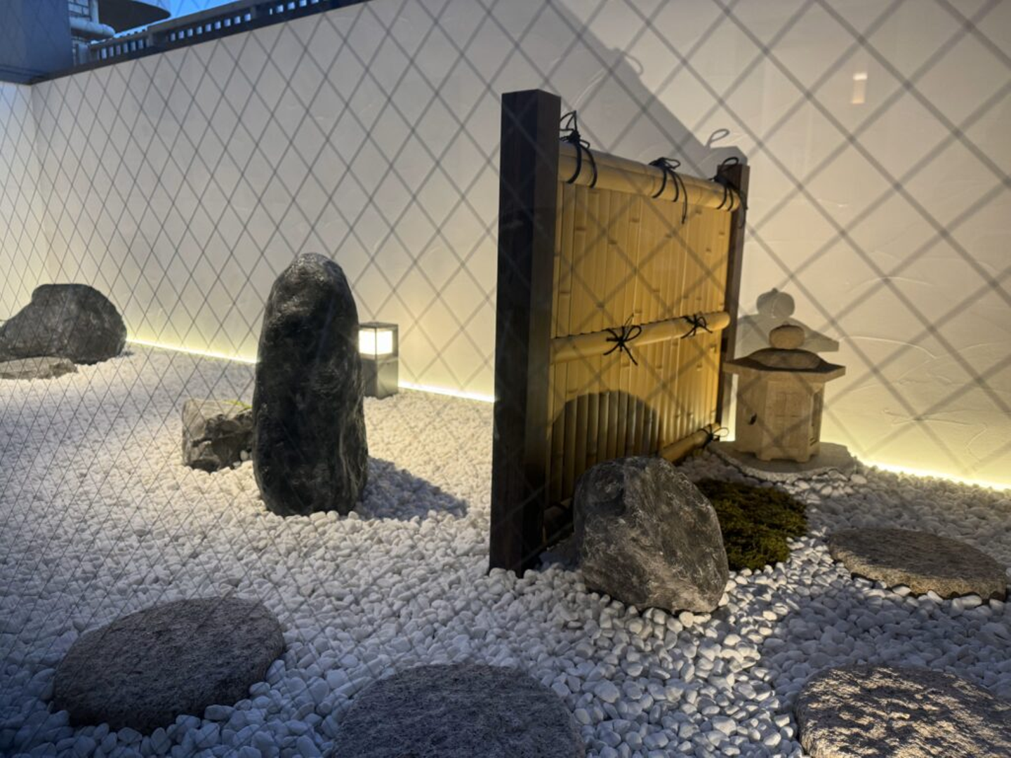 その奥に広がる日本庭園全体も照明の工夫が様々なされているが、次回「会議室」の紹介でプロジェクトストーリーとして説明させて頂く。