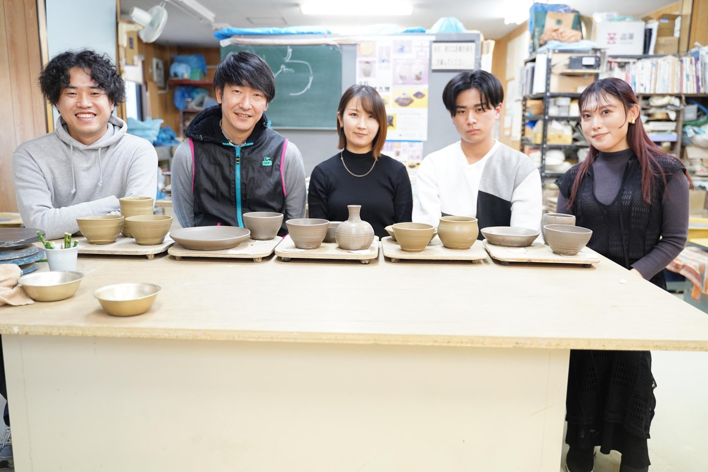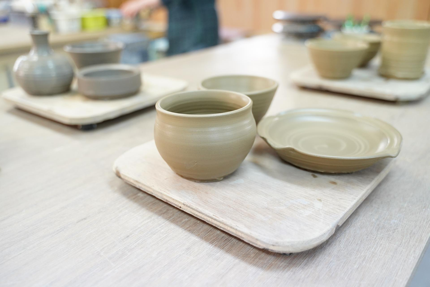 ▼作品が出来上がるまでには、乾燥、素焼き、絵付け、釉薬、本焼きなど、まだまだたくさんの工程が。