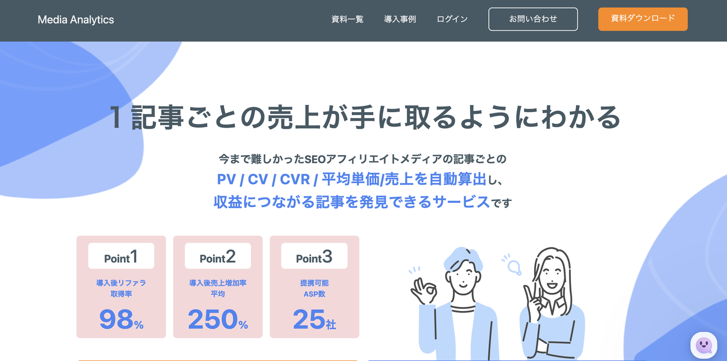 アフィリエイトメディアのデータ分析機能を提供するSaaSプロダクトを開発しています。