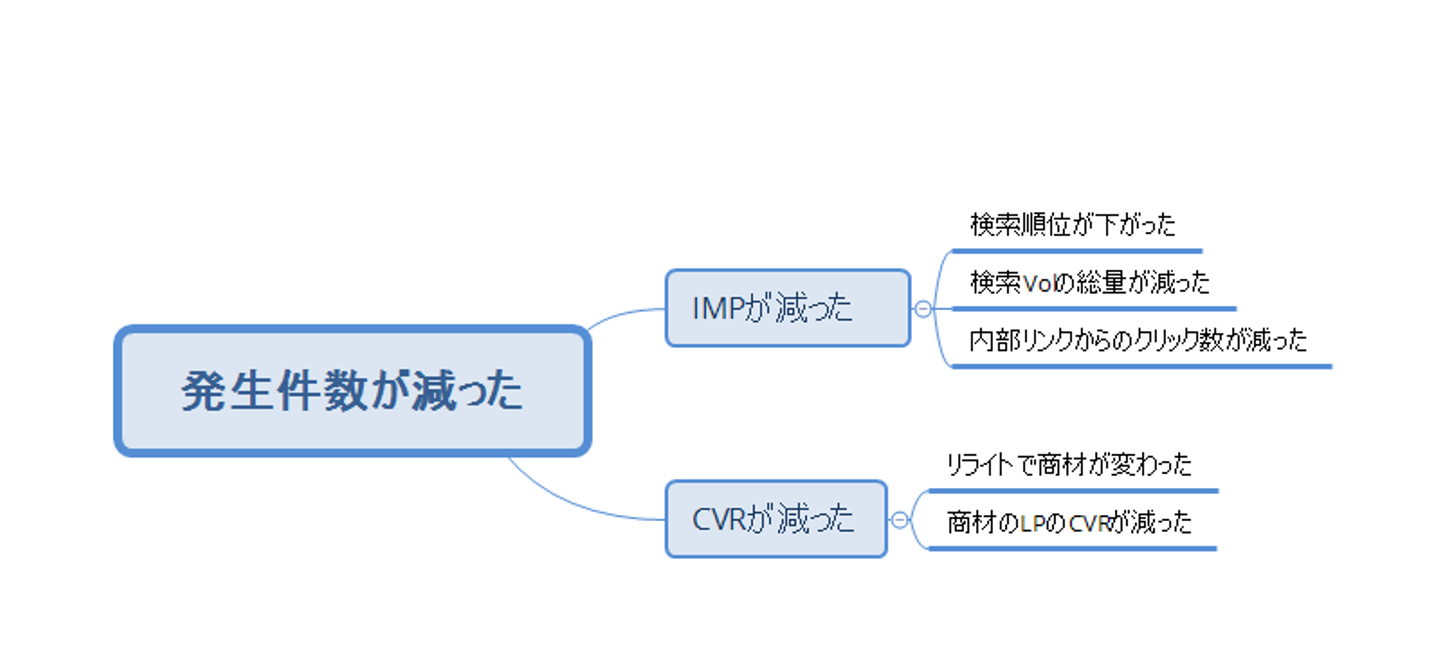 それに対して、「商材の訴求を強化することでCVRを上げれば売上が上がるのではないか?」という仮説を出してくれた。でもこれだとちょっと弱い。もっと仮説がありえるはず。