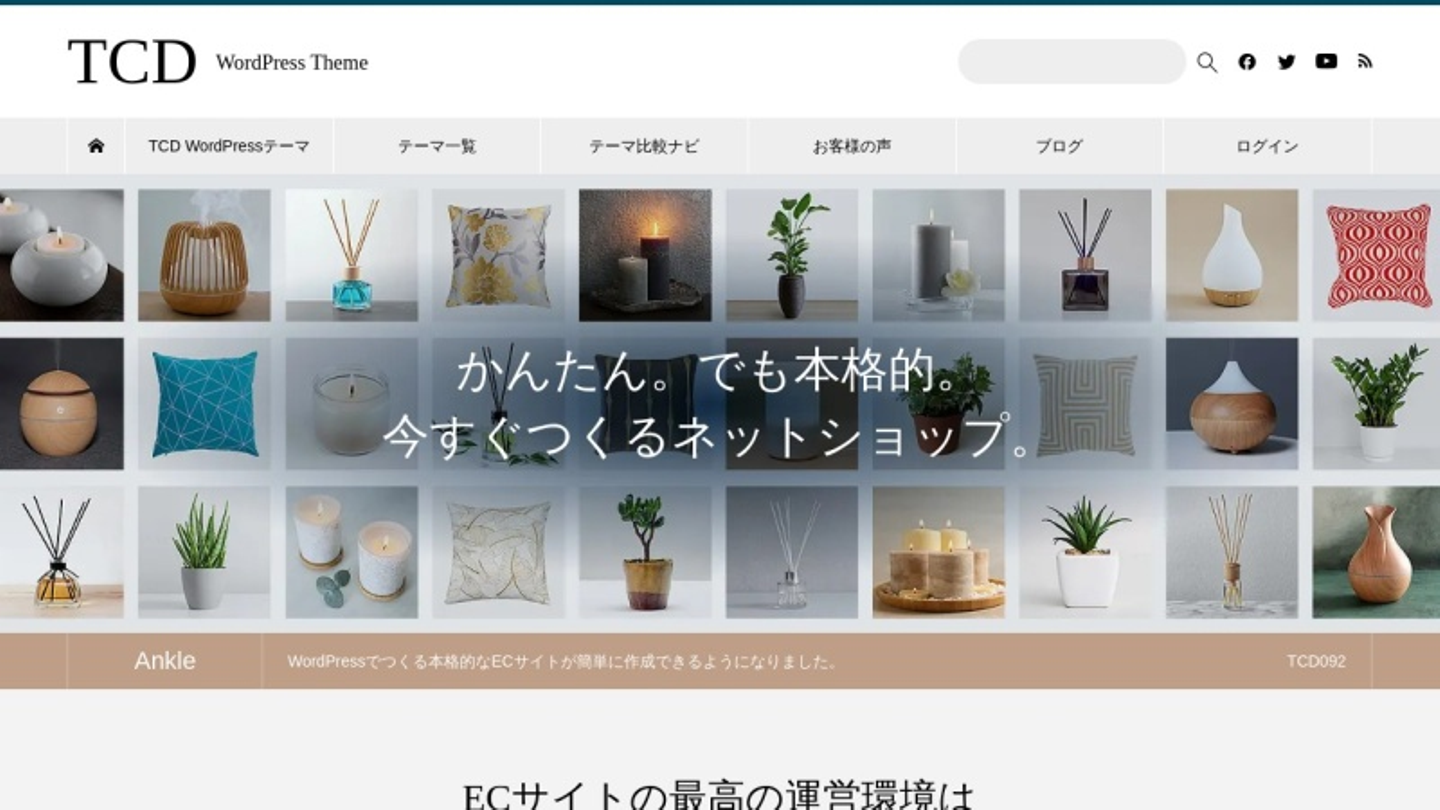 WordPressテーマ「Ankle(アンクル)」はWooCommerce専用のデザインテンプレートで、初心者でもかんたんにネットショップが作成できます。