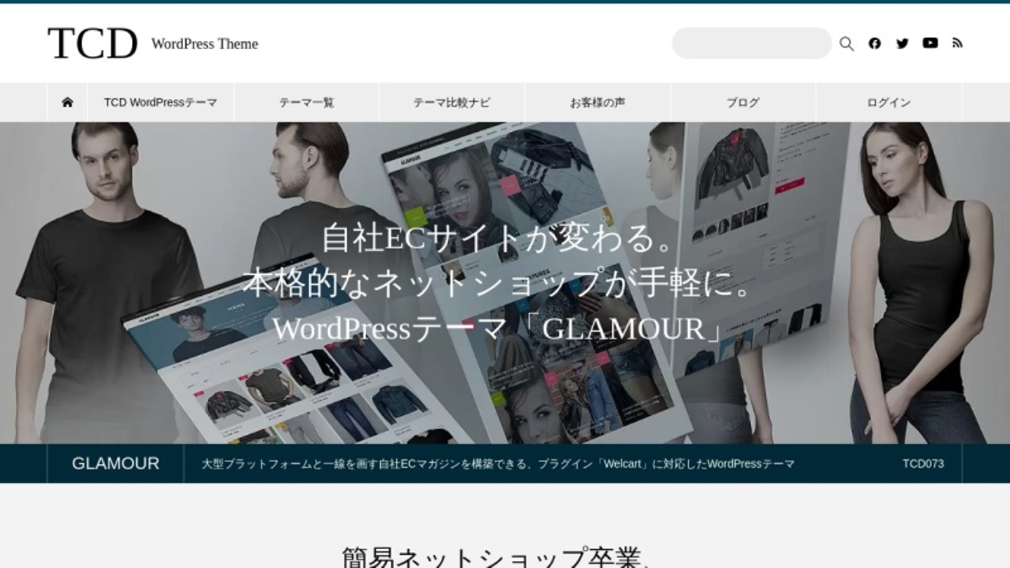 GLAMOURは大型プラットフォームと一線を画す自社ECマガジンを構築できる、プラグイン「Welcart」に対応したWordPressテーマです。