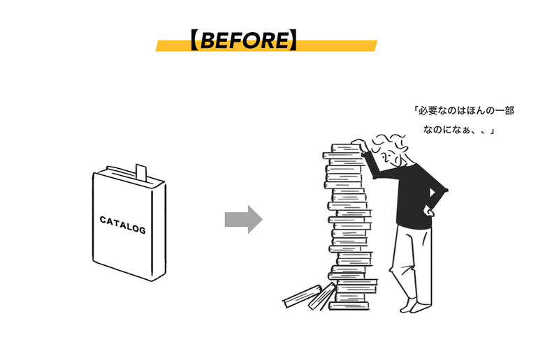 僕たちが今、展開している事業の主たるものは、設計者の検索にかかる業務フローをサポートするサービスです。何千冊のカタログから商品を選ぶ・膨大なバックナンバーから気になるデザインを探す。そんな紙で管理されているアナログな情報をデータベース化し、検索にかかる時間を圧倒的に短縮します。