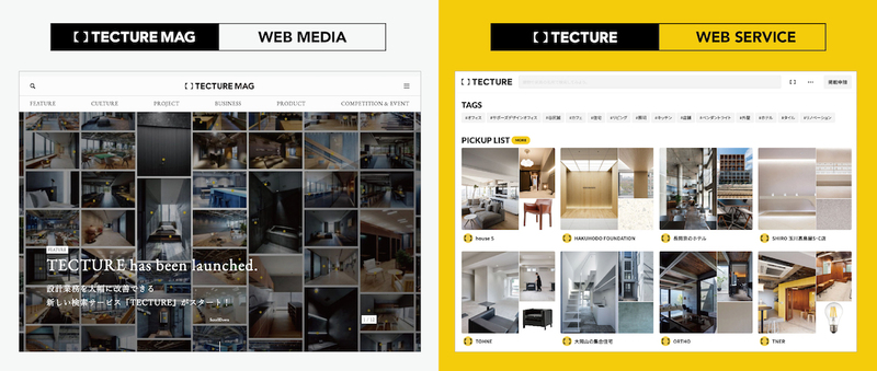 「TECTURE」は今、「検索サービス」と「メディア」の両輪で回っています。相互で行き来もできるようにして、検索して気に入ったプロダクト写真の事例(建築やインテリアなど)のうちいくつかは、設計コンセプトなどがメディアで読めるようになっています。