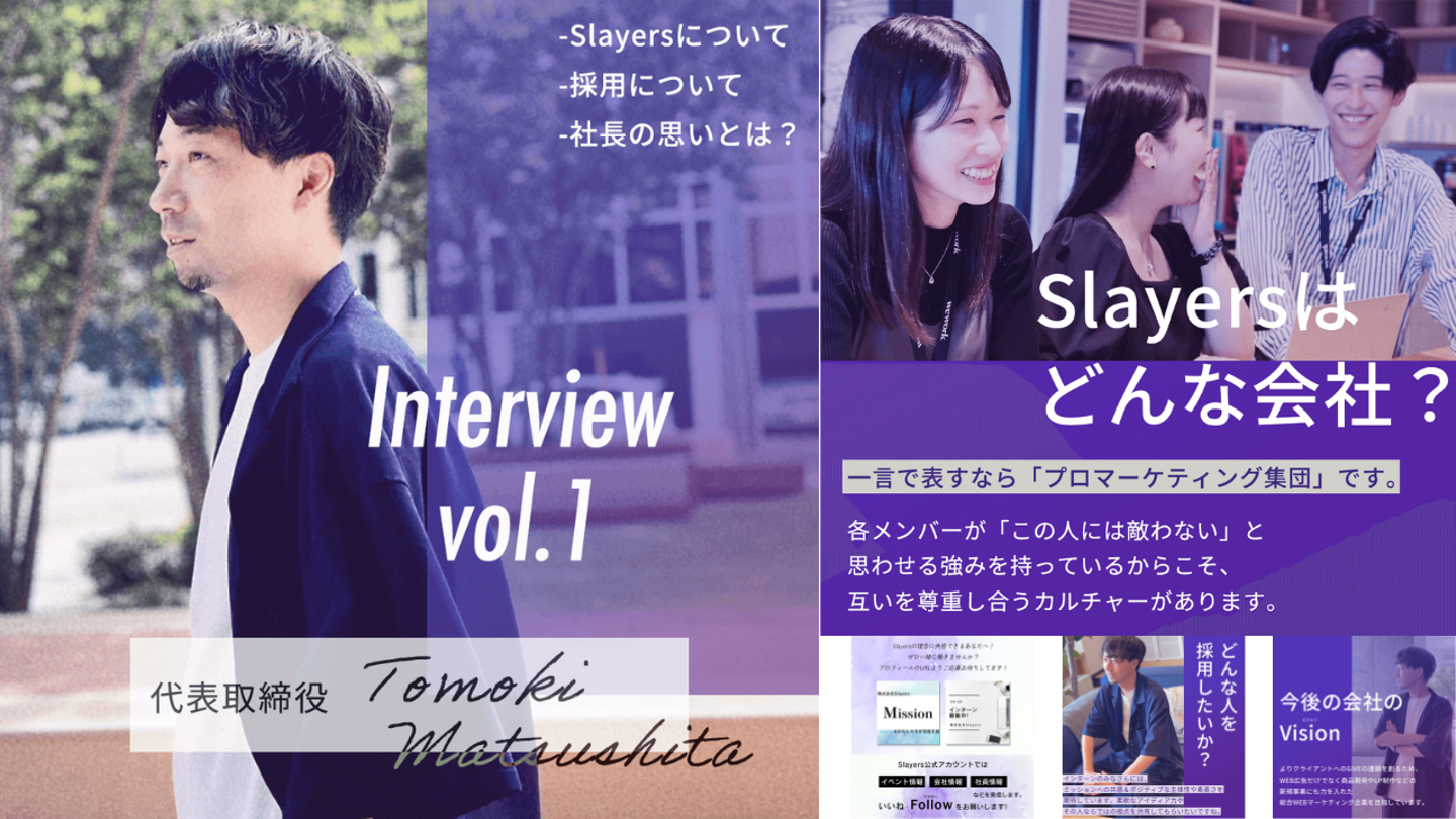 まだまだ投稿内容は少ないですが、スレイヤーズのミッションや代表の松下へのインタビューなど!