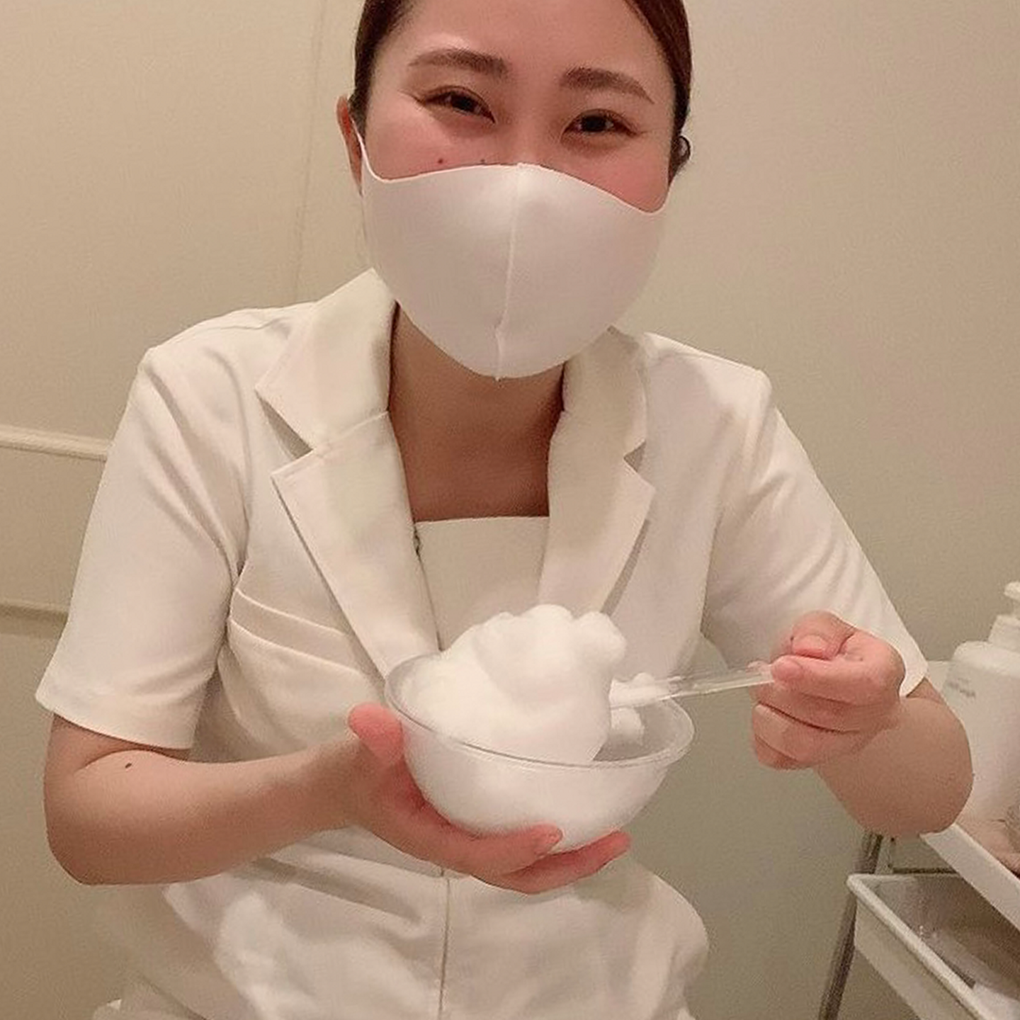 直営サロンにて。毛穴ケアではふわふわの泡とマシンで皮脂と汚れを大掃除します!