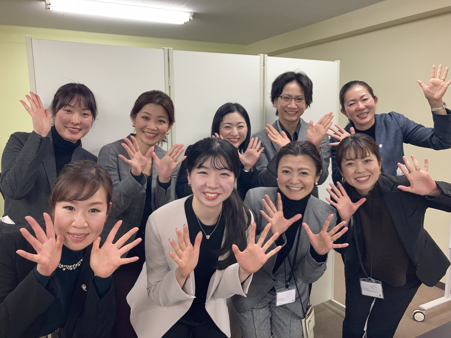 上平さんが所属する、サロンサポート事業2課(近畿・中四国・沖縄エリア担当)メンバー。課長の角井さんを筆頭にパッション溢れるメンバーが集まっています!
