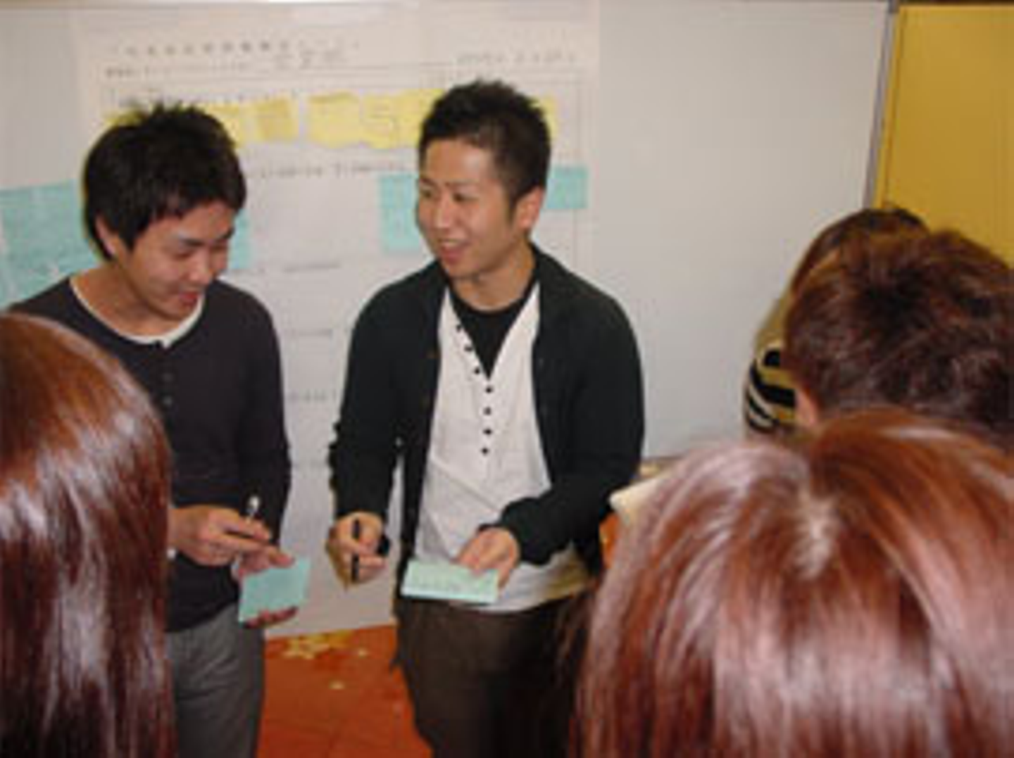 ドラフトする側の上司の皆さん。現サロンサポート事業部部長の脇原(右)/副部長の嘉藤(左)。なんだか楽しそうです。そして・・・若い!😲😲