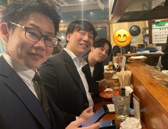 ↑仕事終わりに僕、芦川さん、堀畑くんと飲みに行ったときの写真です!