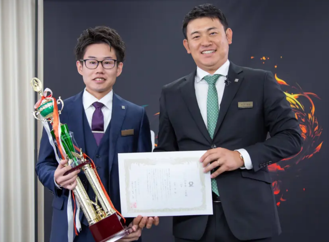 ↑BEASTAR(全社総会)にてMVPを受賞!グループ会社の樗澤社長から表彰状とトロフィーをいただきました。