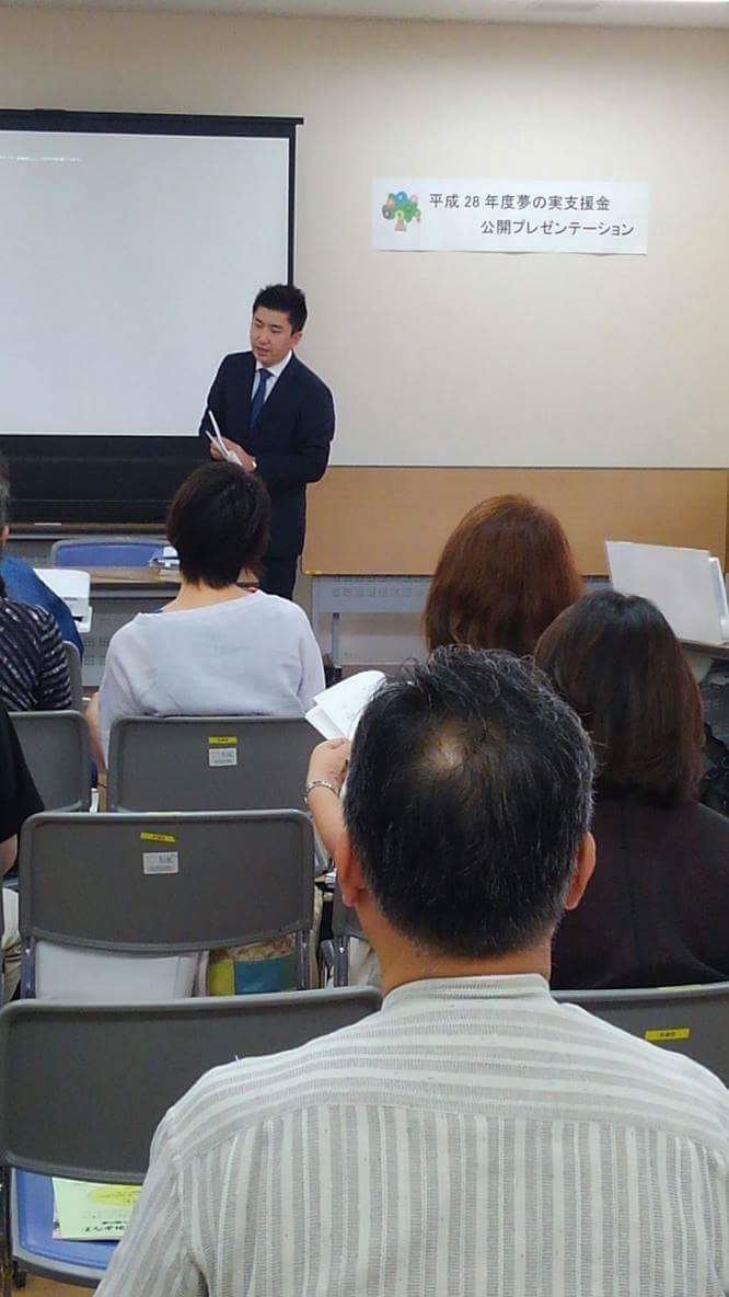 なお、この写真は「二次障害にさせない社会づくり」を掲げてNPO団体を立ち上げるために箕面市の「夢の実支援金」の公募に申し込みをして市民向けに公開プレゼンをした時です。今のエコルドの原点となる1枚です。