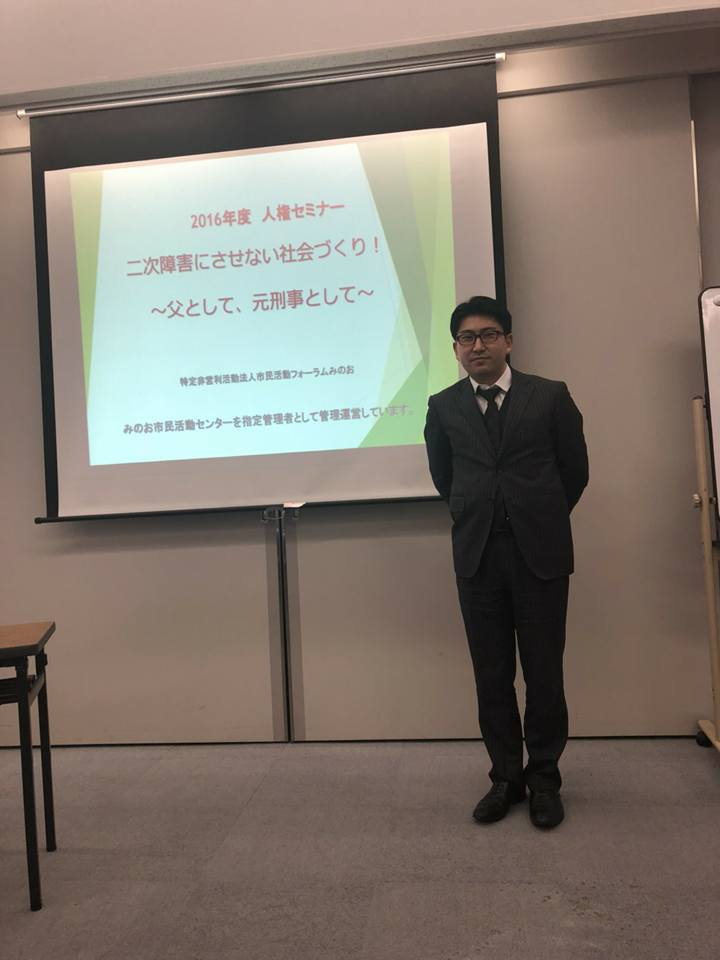 これも2016年ですね。これは箕面市で人権セミナーに登壇させてもらった時の写真です。この頃から少しずつ太り始めてきたことがわかります、、、なぜ七三分けなのかを知りたい方は直接お会いした時にお話ししますね!