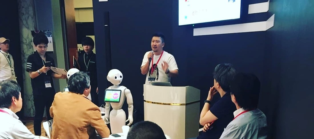 これが2019年ですね。実はこの年の前年からイメチェンをしました。共同創業した中山のぞみのアドバイスで「ダサい!」と言われてしまい、このような感じになりました。なお、これは2019年に東京で開催されたSoftBank World 2019に登壇させてもらい、当社で開発したPepperに実装するロボットアプリを発表しました。SoftBank Worldに出展しようと思うとすごい金額ですがソフトバンクのプロモーションの場をお借りすることで実現しました。