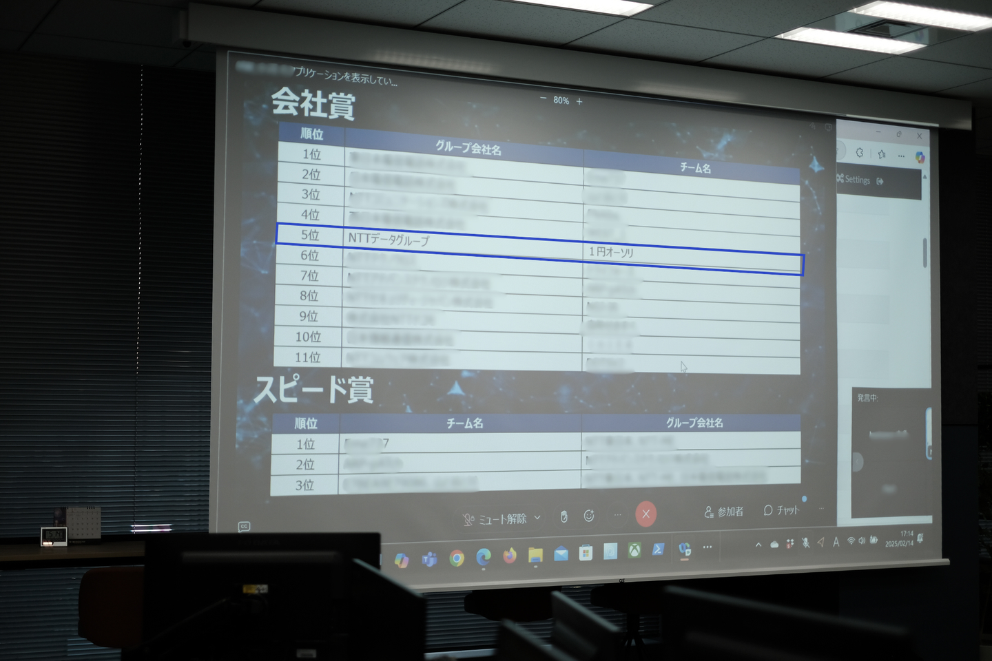 全体で5位、NTTデータグループとしては1位という素晴らしい結果となりました。