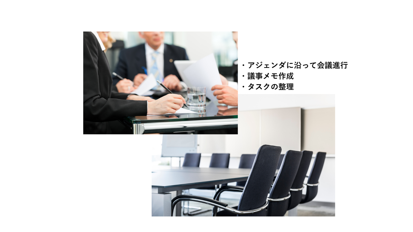 会議をファシリテートするプロジェクトマネージャーとともに、資料の提供や議事メモをまとめたり、次回のタスクを確認したりします。