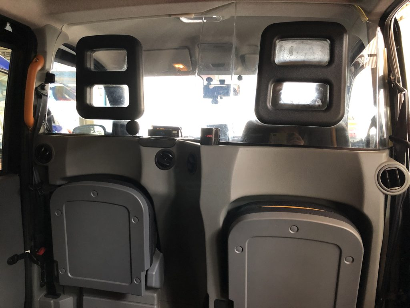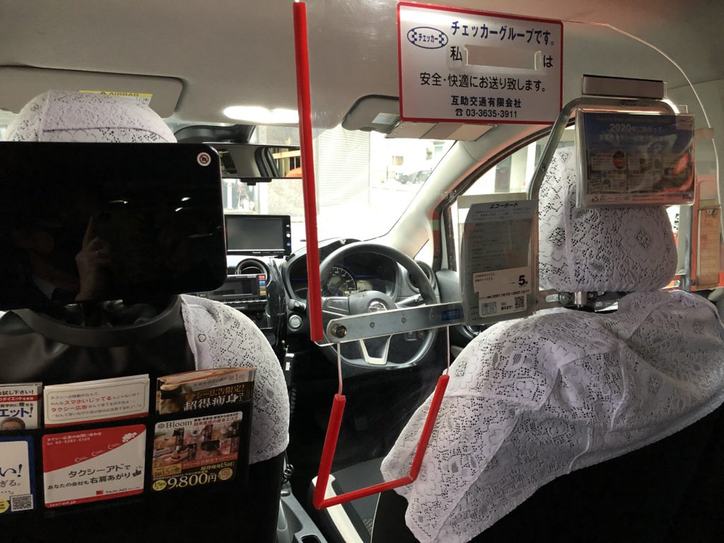 車いすを乗せる関係なのか、サービスの関係なのかはわかりませんが、ジャパンタクシーの場合、防犯ガラスを設置していない会社がとても多い。