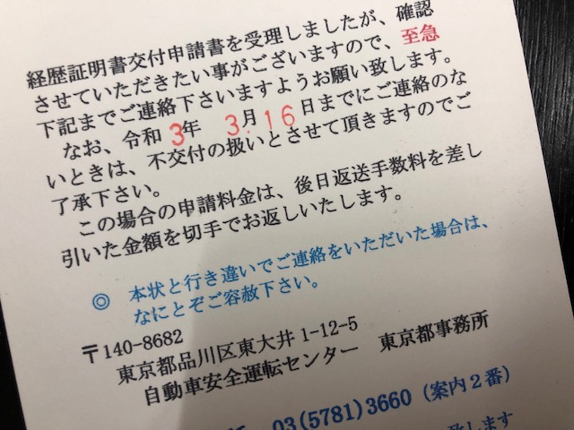 無事故・無違反証明書の申請を行ったのですが、昨日自宅に帰ると、「聞きたいことがあるから、至急連絡しろ」なんて内容でハガキが来ていました。