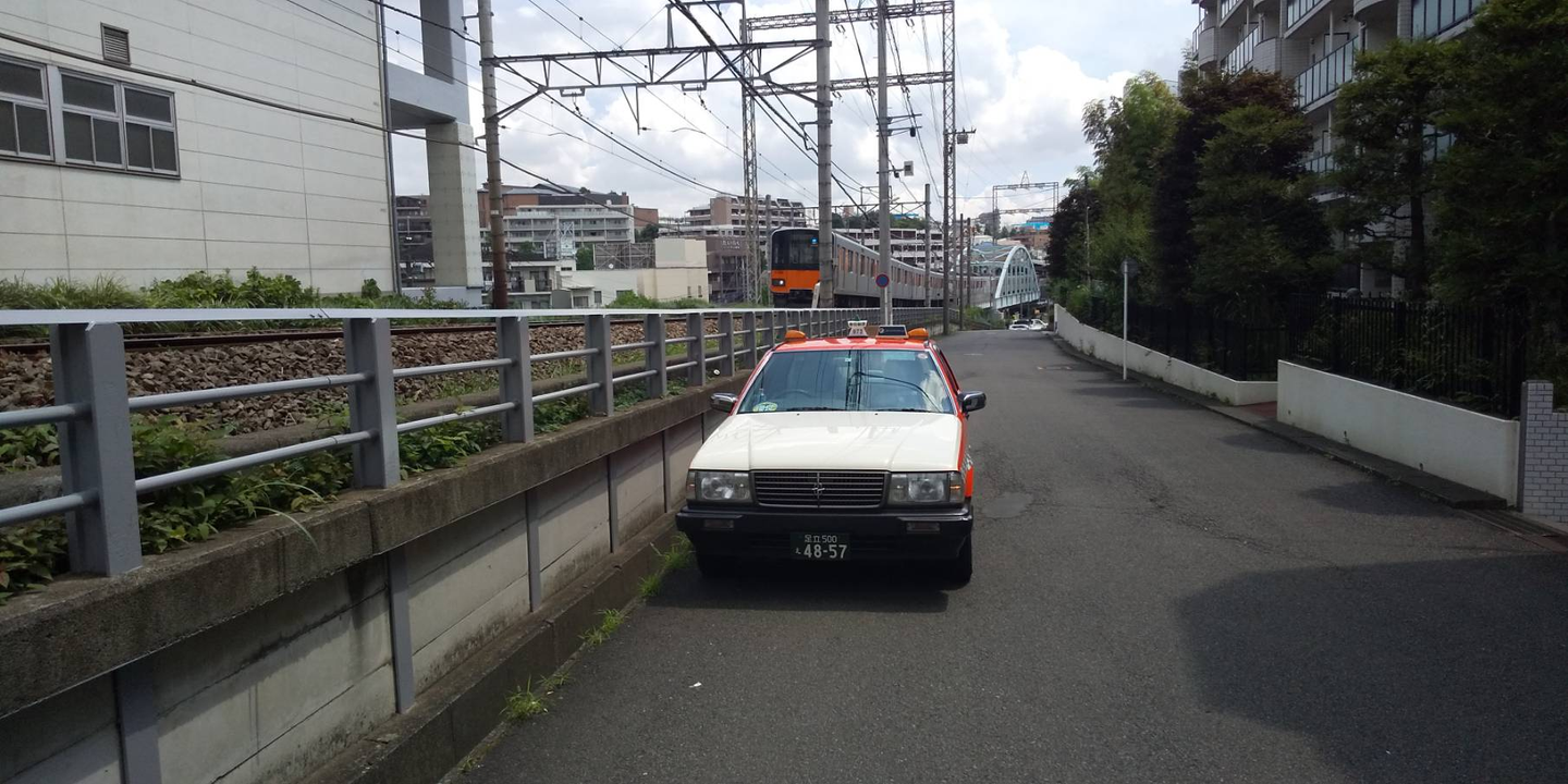 目的は、前回と同じくチェッカーカラーのセドリックと東急車両を一緒に写真に撮りたいというもの。