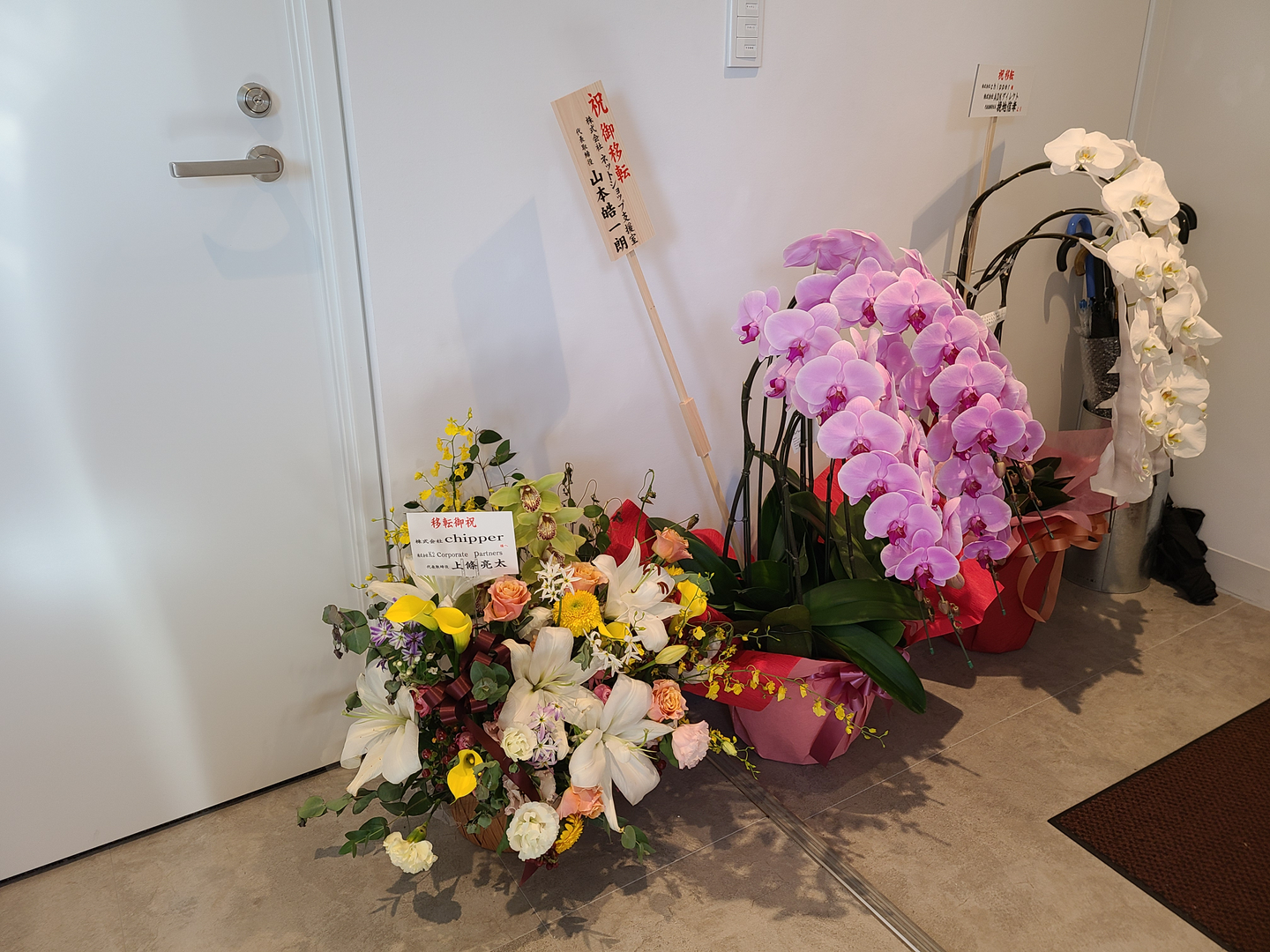 たくさんの企業さんからお祝いのお花を頂戴しました!