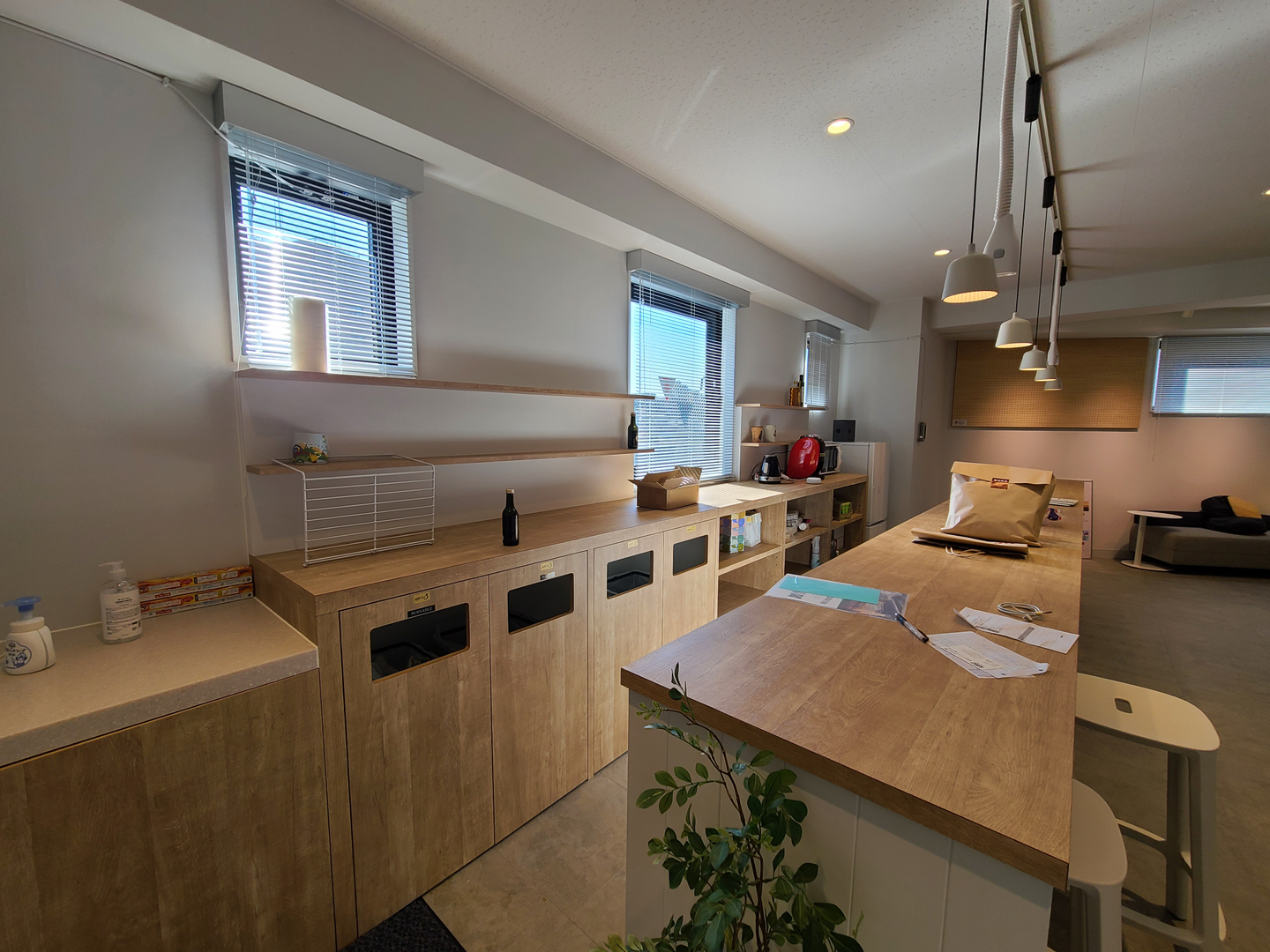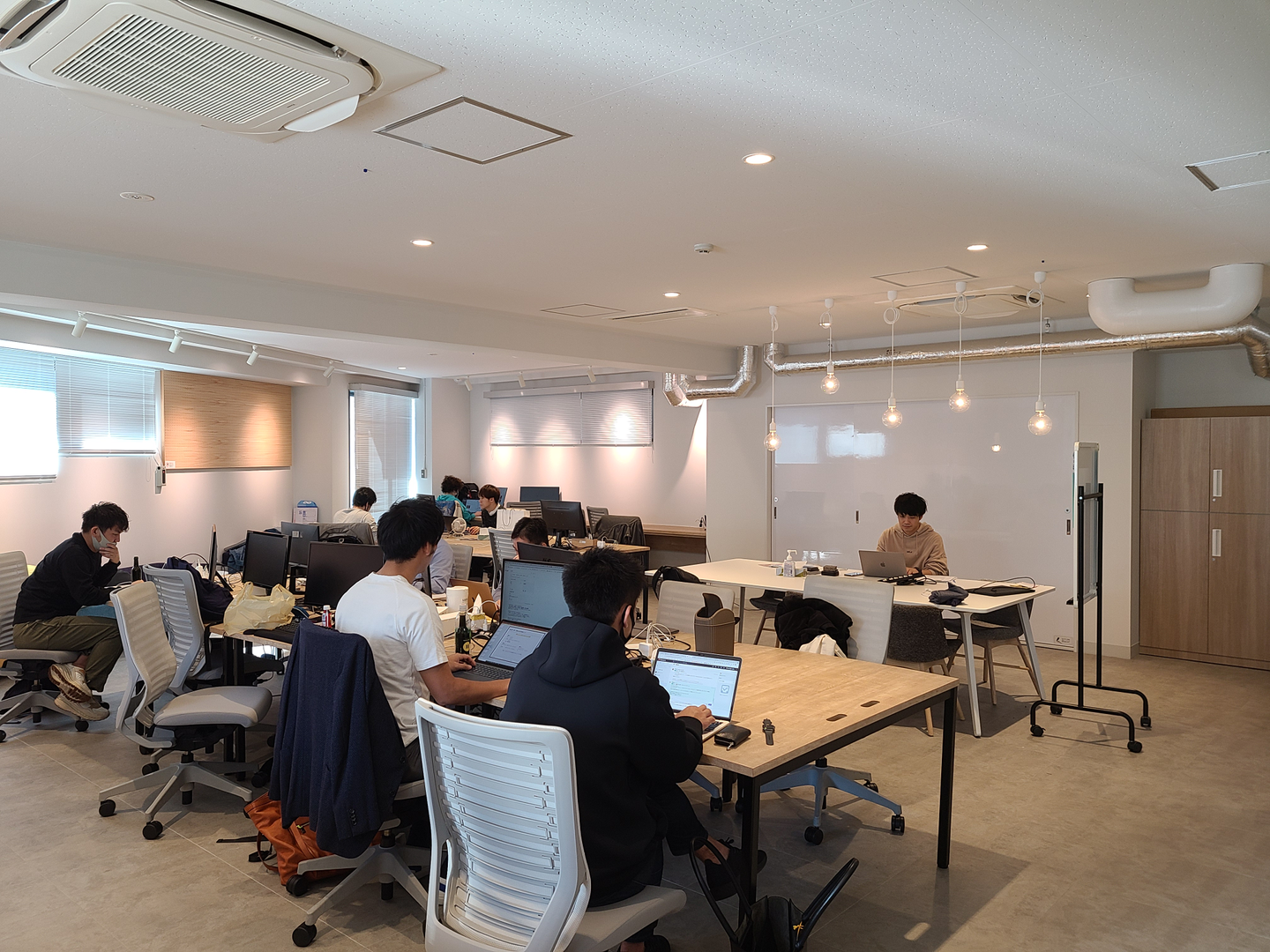 働く場所は以前のオフィス同様、役員、従業員、業務委託社員などが自由闊達に意見交換が出来るようにオープンであり、可能な限りフリーアドレスになるようにしています。(実際はお気に入りの席ができてはしまうのですが笑)