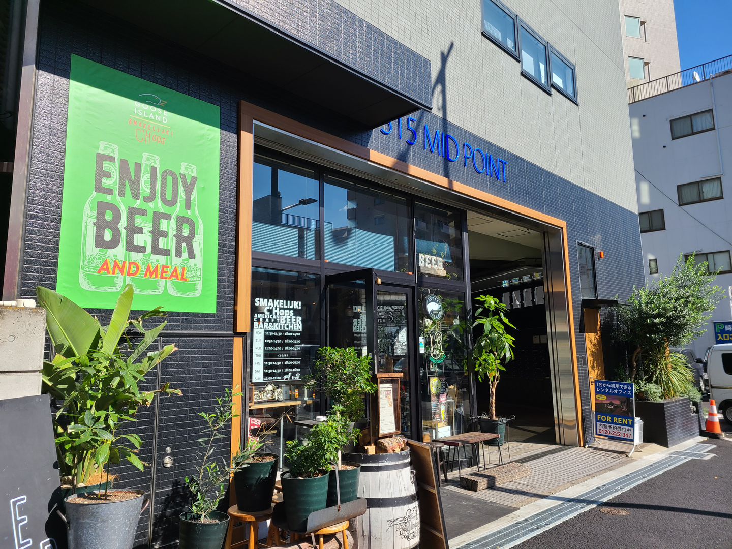 以前の一軒家というオフィスも良かったですが、今回はオフィスビルのテナントとして入居する形になりますので、一階にはおしゃれな飲食店も入っています!"ENJOY BEER"良い響きですよね笑