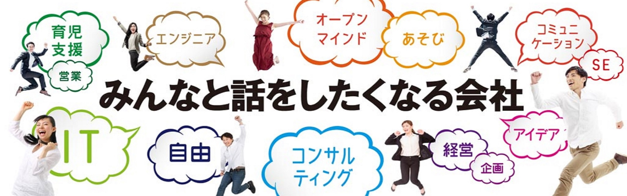 自由闊達で幸せな社会の実現。をビジョンに掲げている当社では、年齢や役職に関係なくフラットな組織にし、誰でも自由にアイデアや意見、議論できる雰囲気を重視してます。