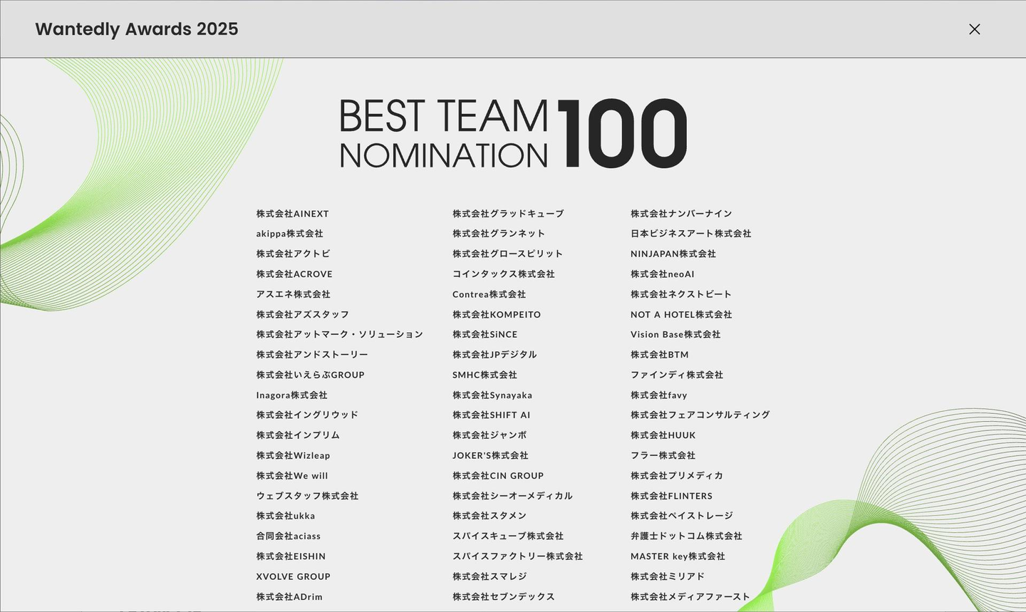 Wantedly Awards 2025 BEST TEAM NOMINATION 100とは