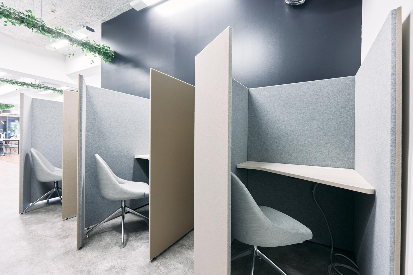 フリースペースの奥には3か所の個人ブースがあり、集中的に仕事したい!というときに気軽に利用できます。
