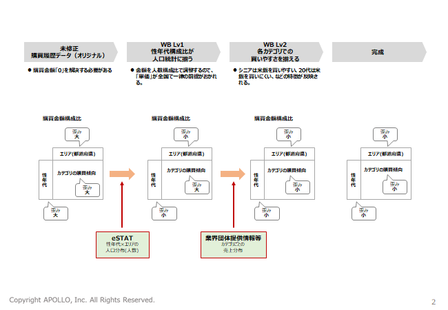図1. 購買履歴データに対する性年代×エリア×カテゴリ購買傾向のウェイトバックロジック