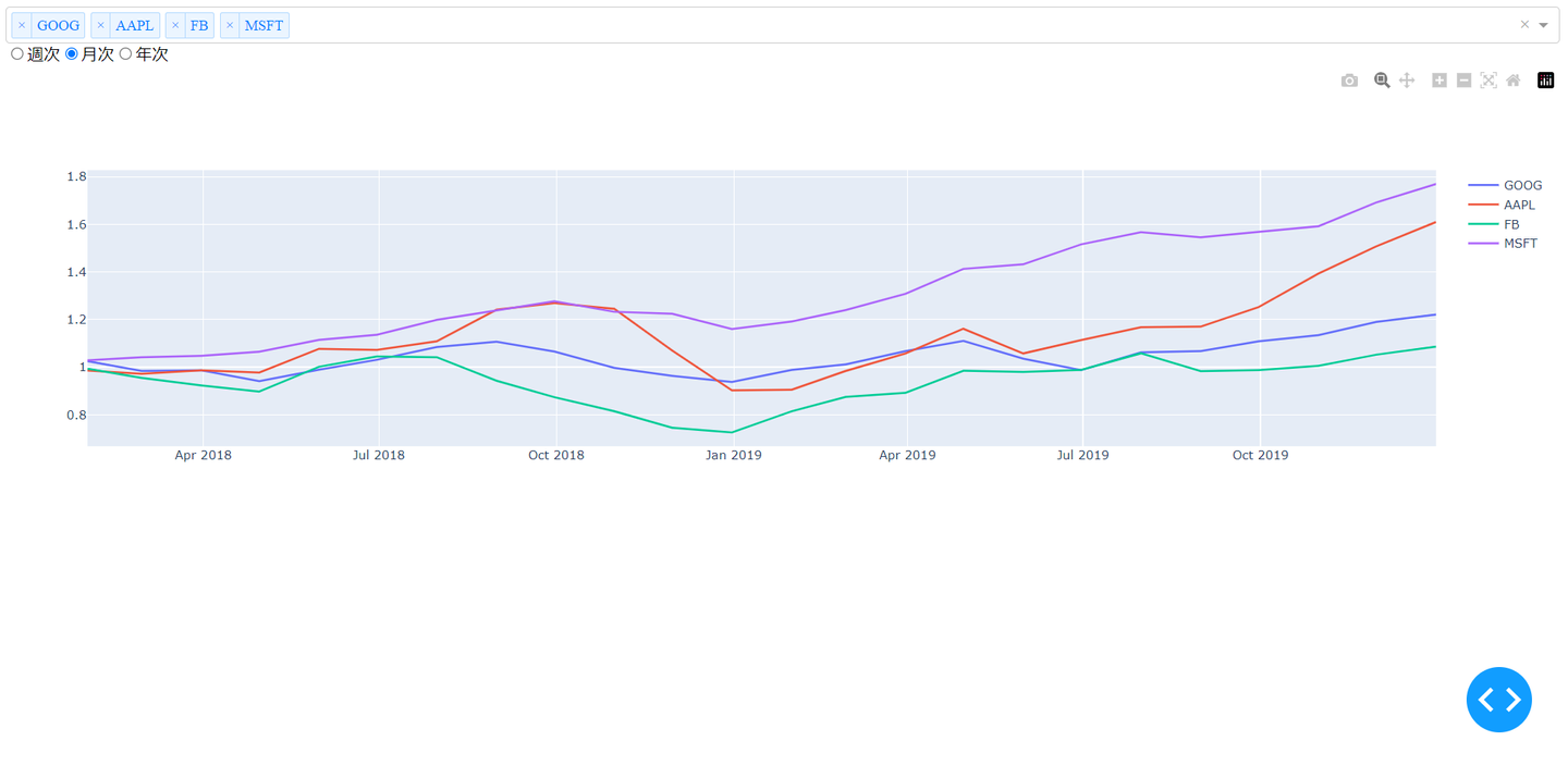 df = plotly.data.stocks()これで下準備が完了しました。これからダッシュボードを作成します。