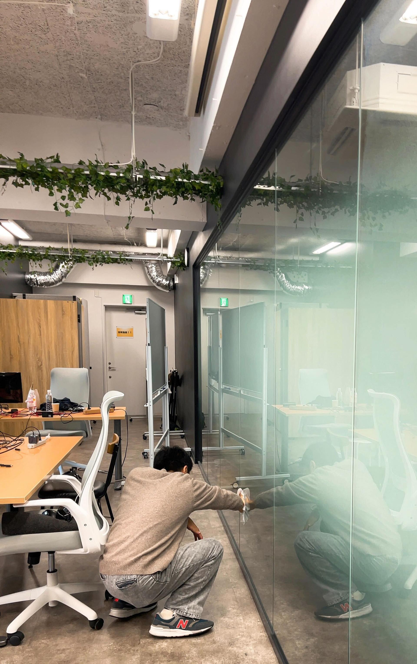 もちろん代表の宮地も例外ではなく、オフィスの顔であるエントランスの掃除を念入りにしていました!
