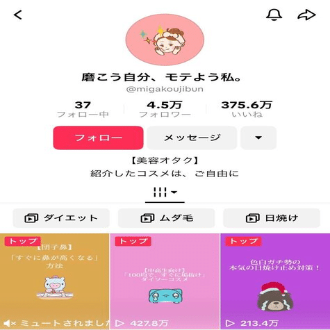 主な業務は美容系のTikTokの立ち上げと運用です。具体的には、アカウントの戦略を考え、実際にその戦略を実行(投稿作成→分析)するまでを行っていました。3ヵ月でフォロワー4万人・月間インプレッション1000万のコンテンツを作る事ができた事が成功体験です。