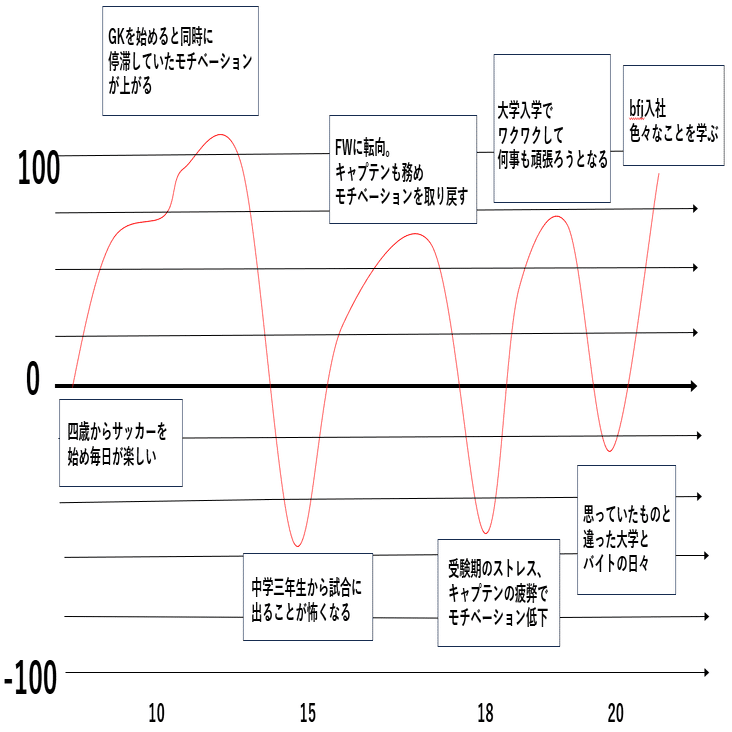 中学時代、サッカーでGKとして国際大会に出場し、イタリア世界王者2チームと対戦し、世界BEST16位に輝く。その後、強豪校に進学しFWに転身し、チームをまとめ上げた。勉学においても成績優秀で、國學院大学にAO合格。進学後、新たに没頭できる環境としてbfjのインターンを選ぶ。
