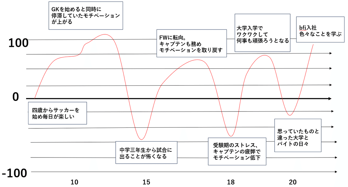 私は5歳でサッカーを始め、高校3年生までの約13年間続けました。小学校5年生頃までは楽しくプレーしていましたが、その頃にプロサッカー選手になりたいという思いが芽生えました。友達と遊ぶよりも、一人でボールを蹴る時間を送っていました。
