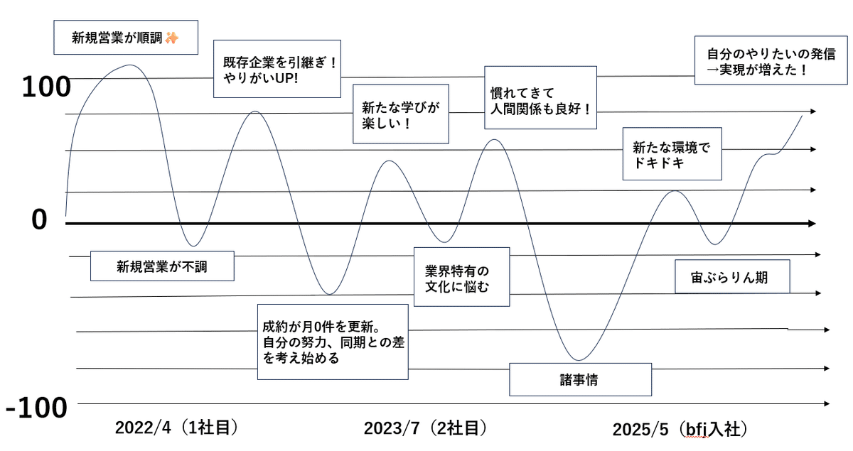 26歳/上智大学卒/新卒で人材系メガベンチャーに入社し、人材派遣の法人営業をメインに従事。その後、建材系大手に転職し、1年半の法人営業を経験。法人営業×人材経験を元に、弊社bfjに2025年5月入社し、採用、人事、PM、新規事業に抜擢。趣味は劇団四季・エスニック料理・旅行。