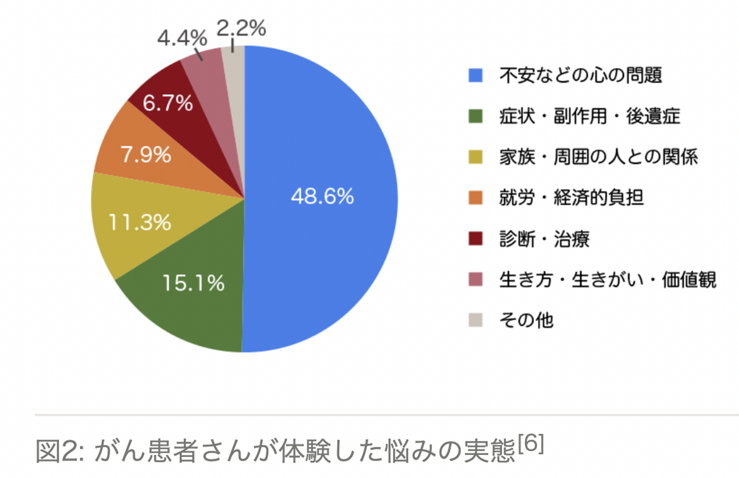 2人に1人が「不安など心の問題」を負担として回答しており、がん患者におけるメンタルケアは急務とされています。