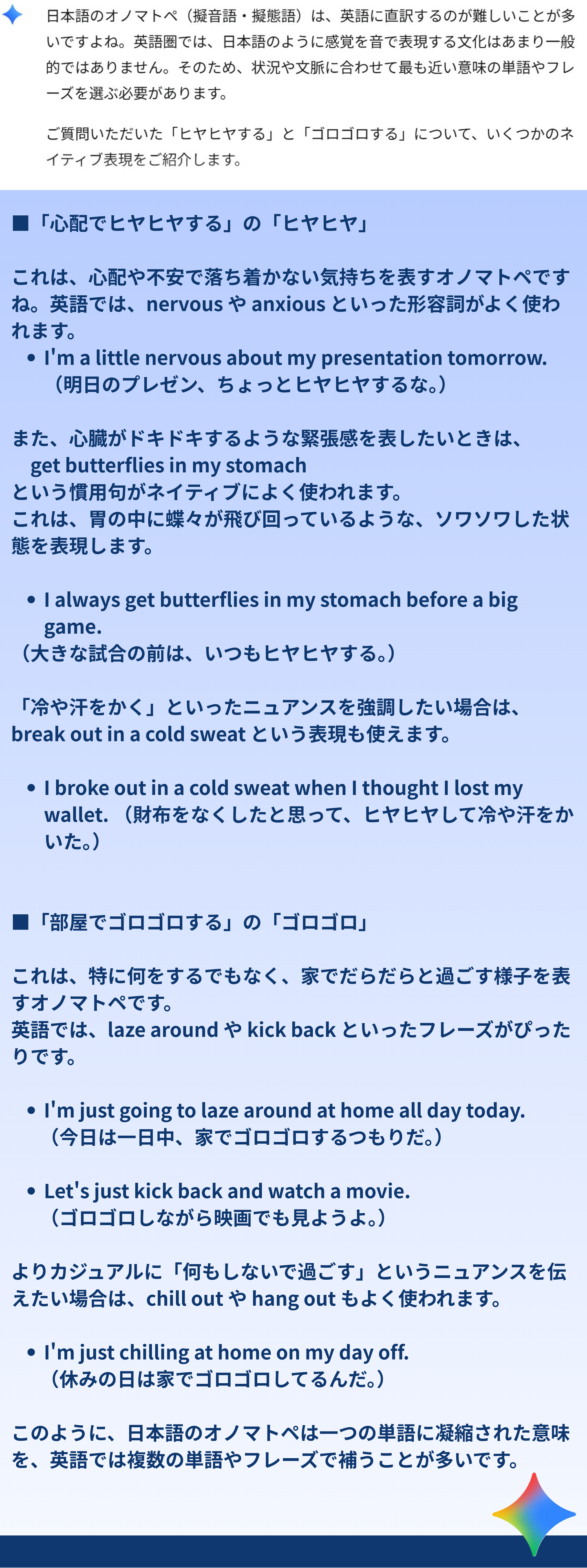 複雑なオノマトペも、ネイティブ表現で丁寧に教えてくれますよ!